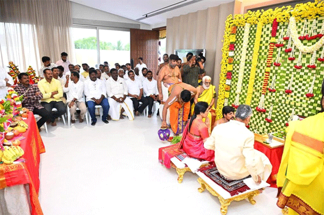 Andhra Pradesh Chief Minister N. Chandrababu Naidu recently performed a traditional Housewarming ceremony at his newly constructed residence