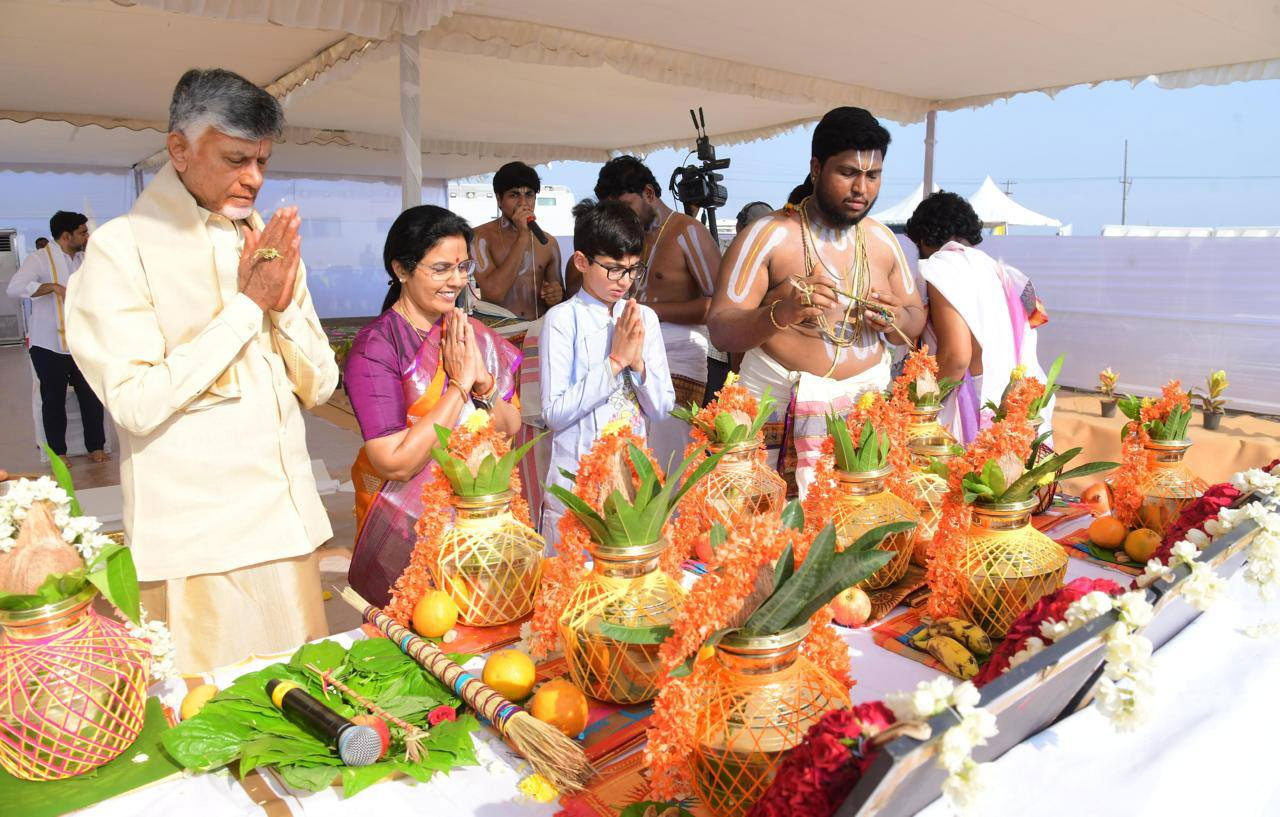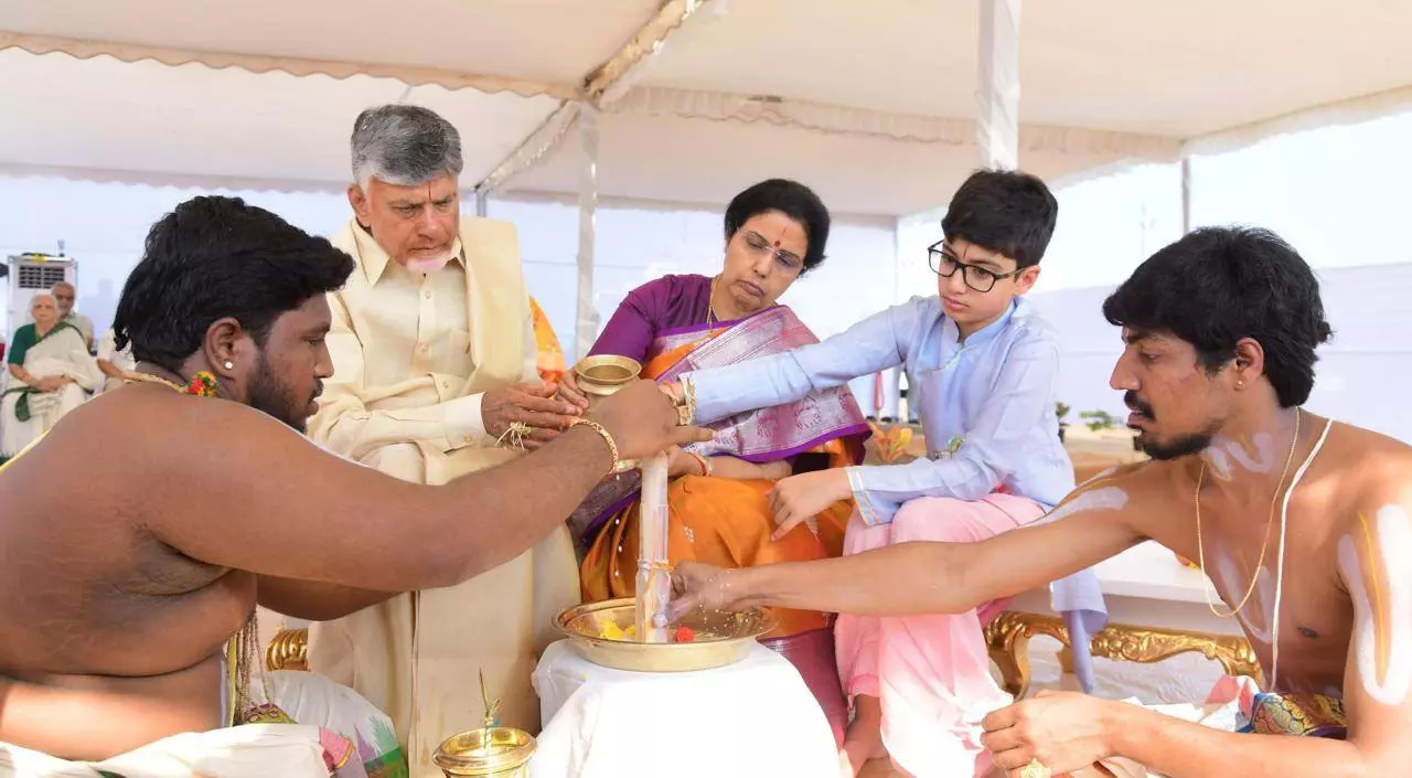 The ground breaking ceremony happened in the presence of the family members in Amaravati today and it was a special ceremony. Chandrababu and his family members, including Nara Lokesh and Nara Bhuvaneshwari were at the ceremony today.
