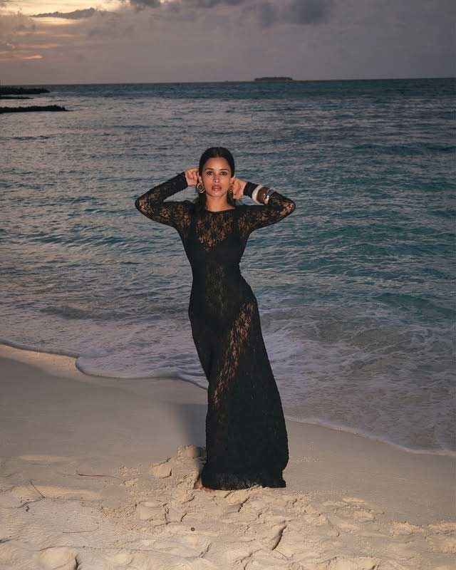 By: Tupaki Desk | 28 May 2025 3:53 PM ISTChetna Pande shared a peaceful and eye catching moment from her beachside snaps on Instagram. In the photo, she is seen wearing a lace body hugging dress standing by the ocean during sunset. She completed the look with chunky bangles and spiral shaped earrings. Chetnaβs caption carried a message of gratitude and positivity: