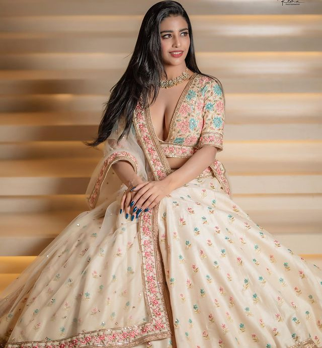 Actress Daksha Nagarkar stuns fans with her latest photodump, stepping out in a breathtaking royal purple lehenga adorned with delicate embroidery and sequins. The richly embellished outfit, featuring intricate floral and butterfly motifs, perfectly highlights her bold yet elegant persona.
