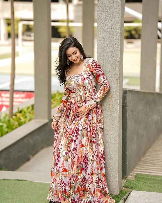 By: Tupaki Desk | 25 April 2025 10:12 AM ISTDeepika Pilli looks beautiful in this photo. She is wearing a long floral dress. The dress has a mix of red, orange and green colors. She is sitting on a wooden chair. Her smile looks very graceful. Her hair is styled softly. She is wearing beautiful earrings. The overall look is stylish and fresh. The caption shows her mood with heart and sunshine emojis. It shows peace and happiness.