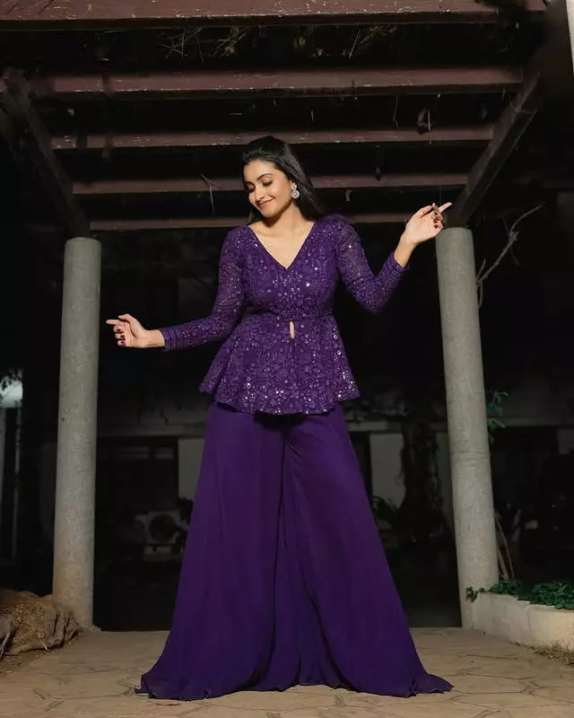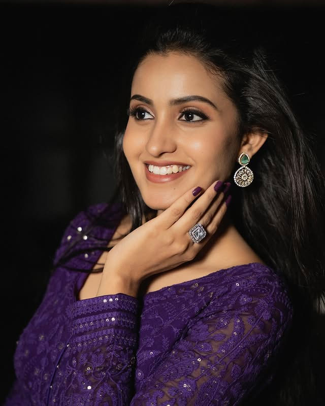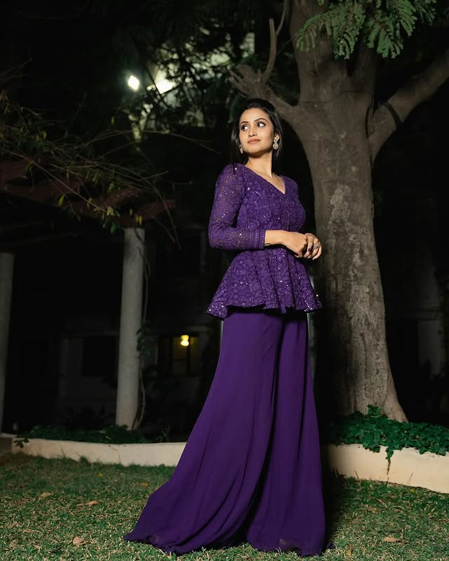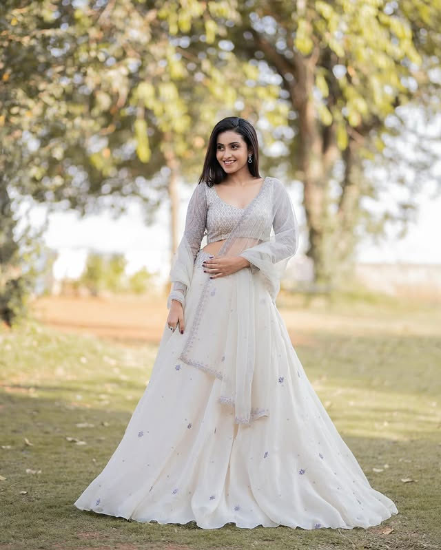 The photo credit goes to her team. The dress is by Label Vishwa. Her earrings are from Anyas 2020. Her stylist is Reshma. The photographer is Keshu. Her hairstyle is done by Mounika Reddy. The whole team helped create this look.