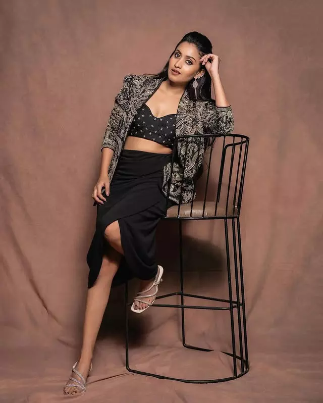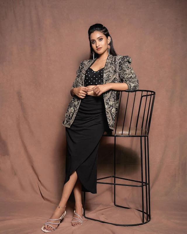 Deepika Pilli shines in a delicately dark embellished jacket look
