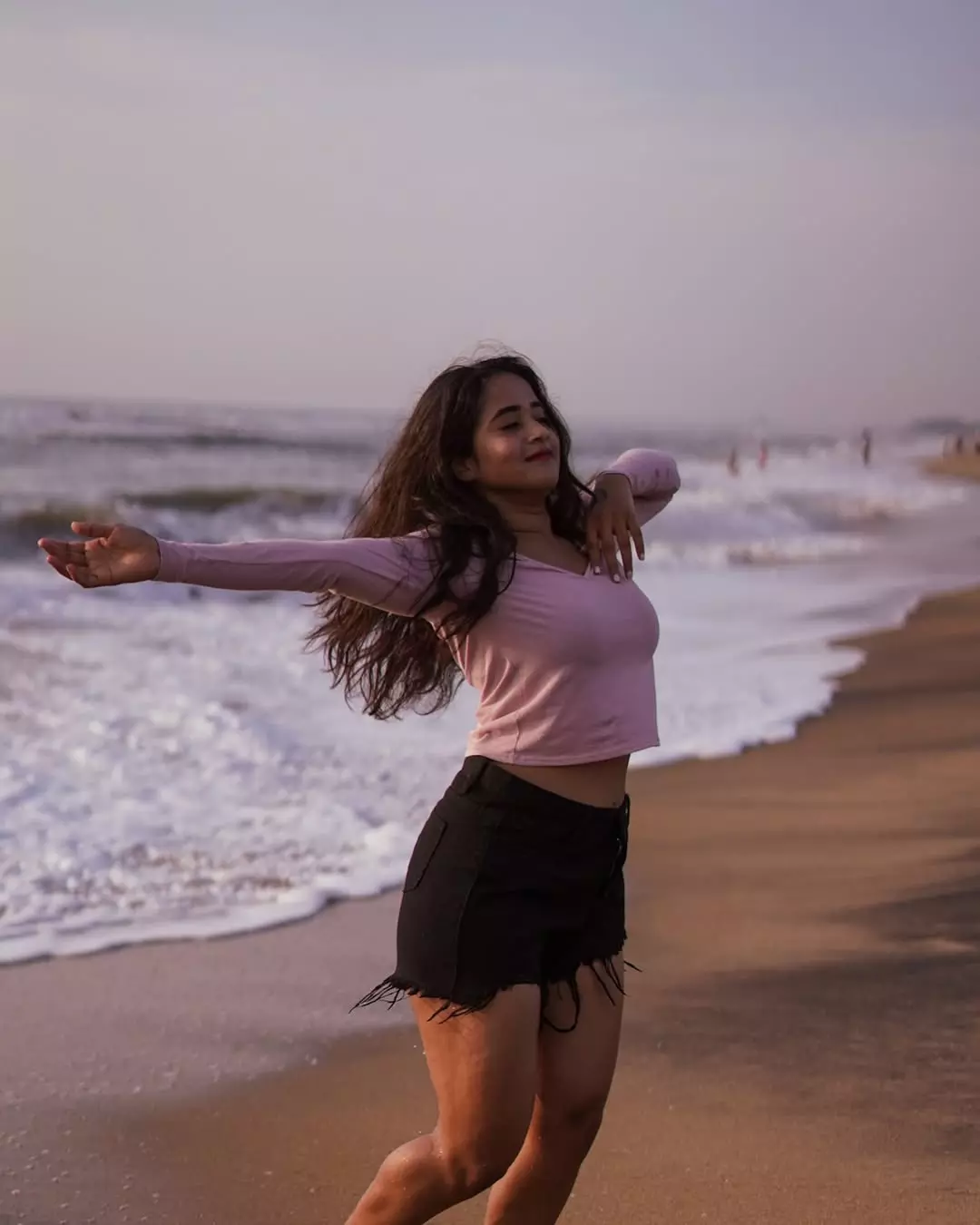 Deepthi Sunaina’s Beachside Grace in Black Saree Wins Hearts