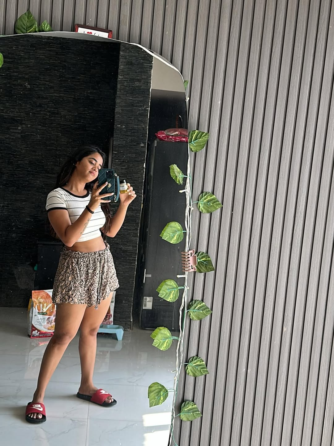 Deepthi Sunaina has once again captured the attention of her fans with a mirror selfie shared on Instagram.