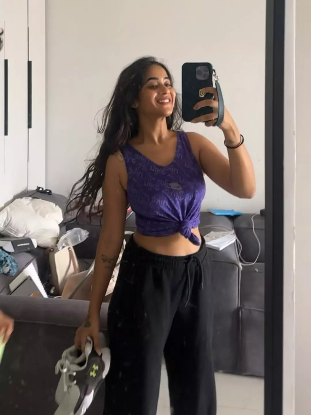 By: Priya Chowdhary Nuthalapti | 2 Sept 2025 10:38 PM ISTDeepthi Sunaina has once again captured the attention of her fans with a mirror selfie shared on Instagram. In the photo, she is seen wearing a teal Puma sports bra paired with black joggers flaunting her toned abs and cheerful smile. Her caption in Telugu reads, “నచ్చిన దాని కోసం నా తపన” which translates to “My dedication for what I love.” This clearly reflects her passion for fitness and hard work towards maintaining a healthy lifestyle.