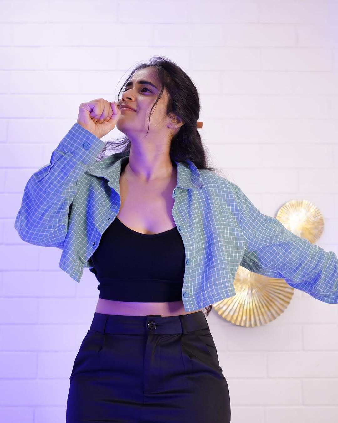 Deepthi Sunaina owns the frame in a candy-pink handkerchief crop top that dips just enough to tease, paired with ripped high-waist denim that hugs every curve like a second skin. One hand brushes through tousled waves while the other rests over her heart, tiny tattoos dancing on sun-kissed arms as she throws a sultry half-smile straight into the lens—pure Gen-Z fire in minimalist glory. : @rohittnagsai—the Bigg Boss Telugu sensation and reel queen proves less wallpaper, more wildfire.Five Best Titles
