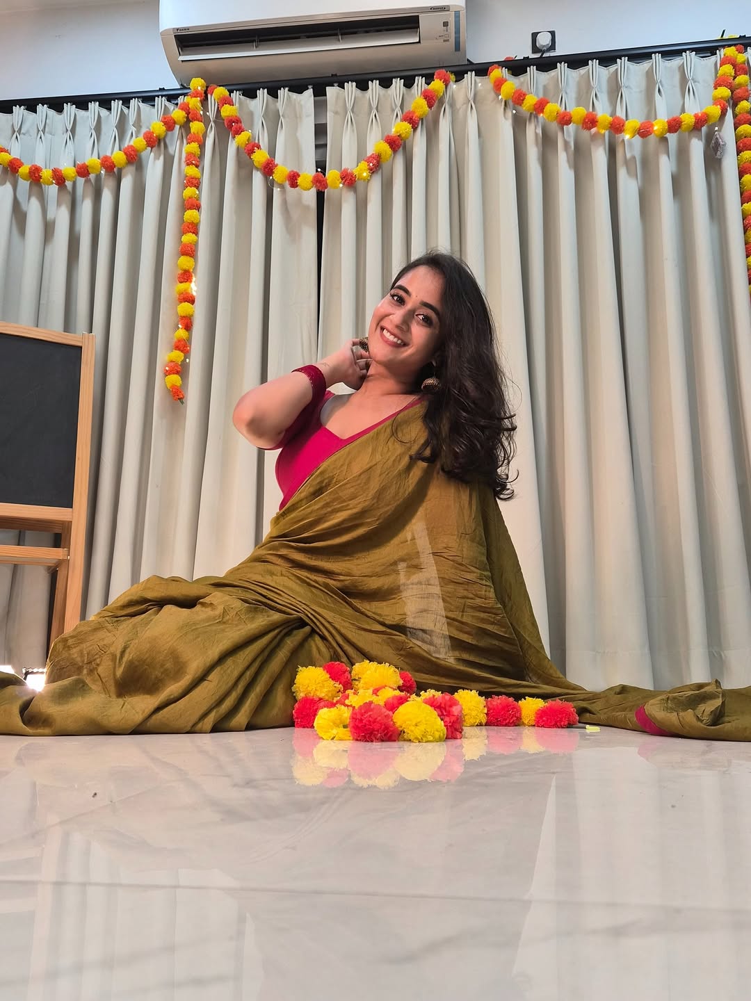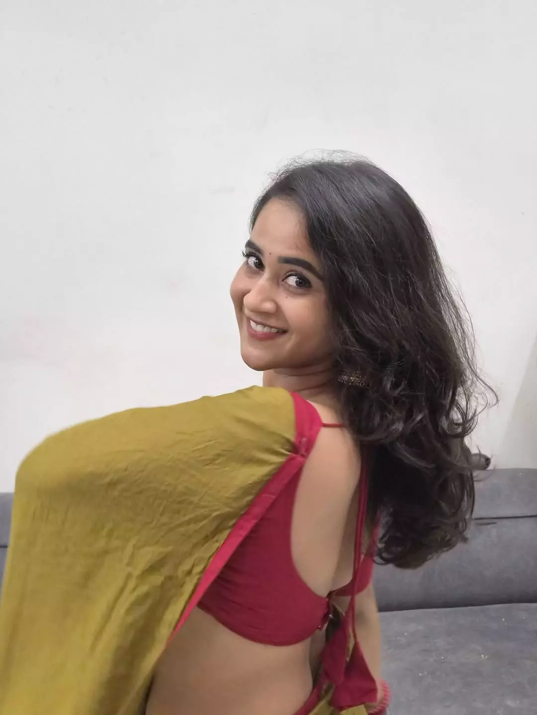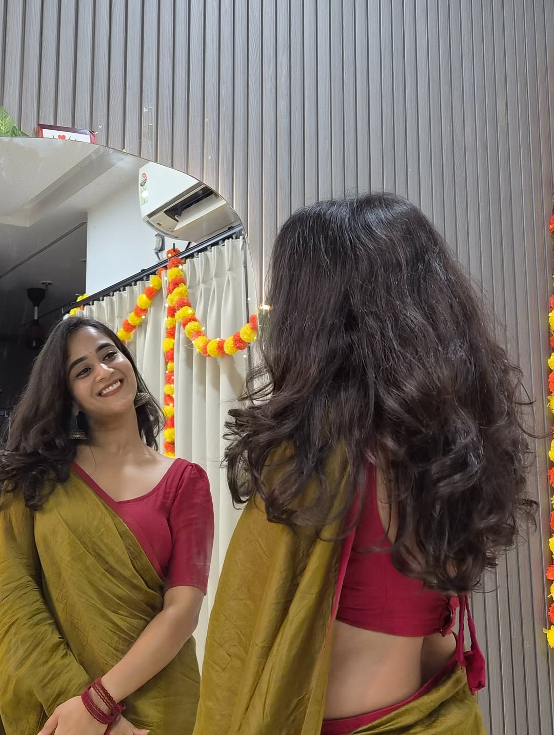BB Telugu 2 fame Deepthi Sunaina has once again caught the attention of her fans with her latest Instagram photos. This time, she chose a beautiful biscuit-colored saree that gave her a graceful and traditional look. The simple yet stylish saree, matched with elegant makeup and accessories made her pictures go viral in no time. Fans filled the comment section with love and compliments by calling her “angelic” and “gorgeous.”