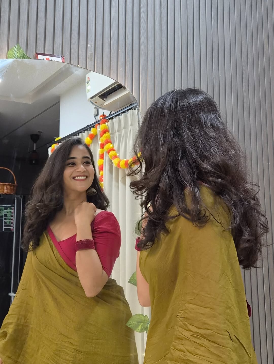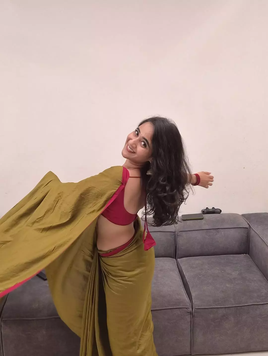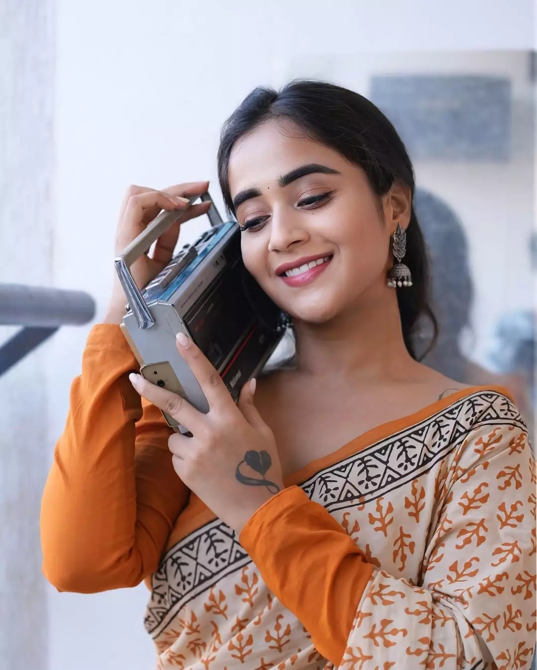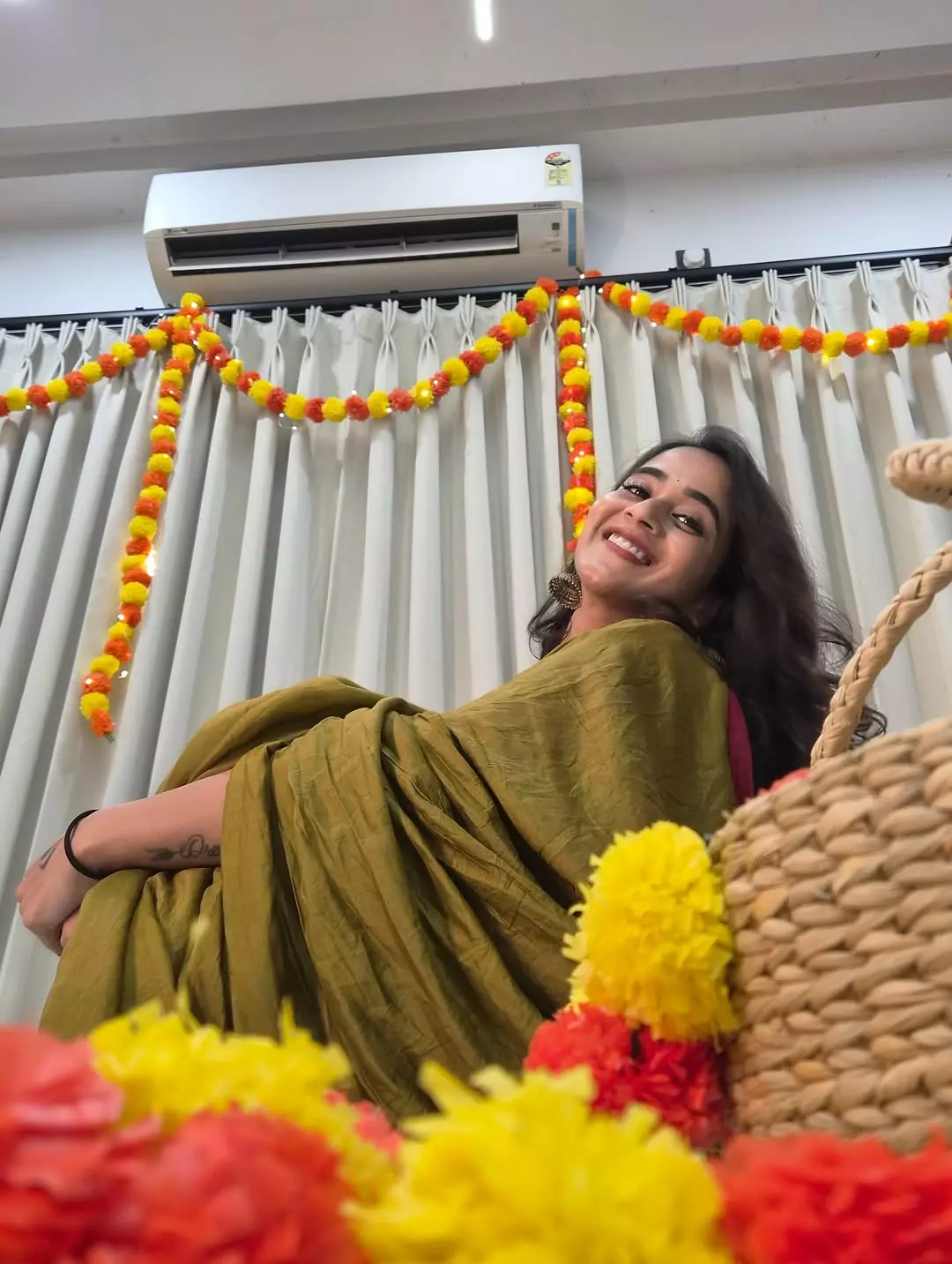BB Telugu 2 fame Deepthi Sunaina has once again caught the attention of her fans with her latest Instagram photos. This time, she chose a beautiful biscuit-colored saree that gave her a graceful and traditional look. The simple yet stylish saree, matched with elegant makeup and accessories made her pictures go viral in no time. Fans filled the comment section with love and compliments by calling her “angelic” and “gorgeous.”