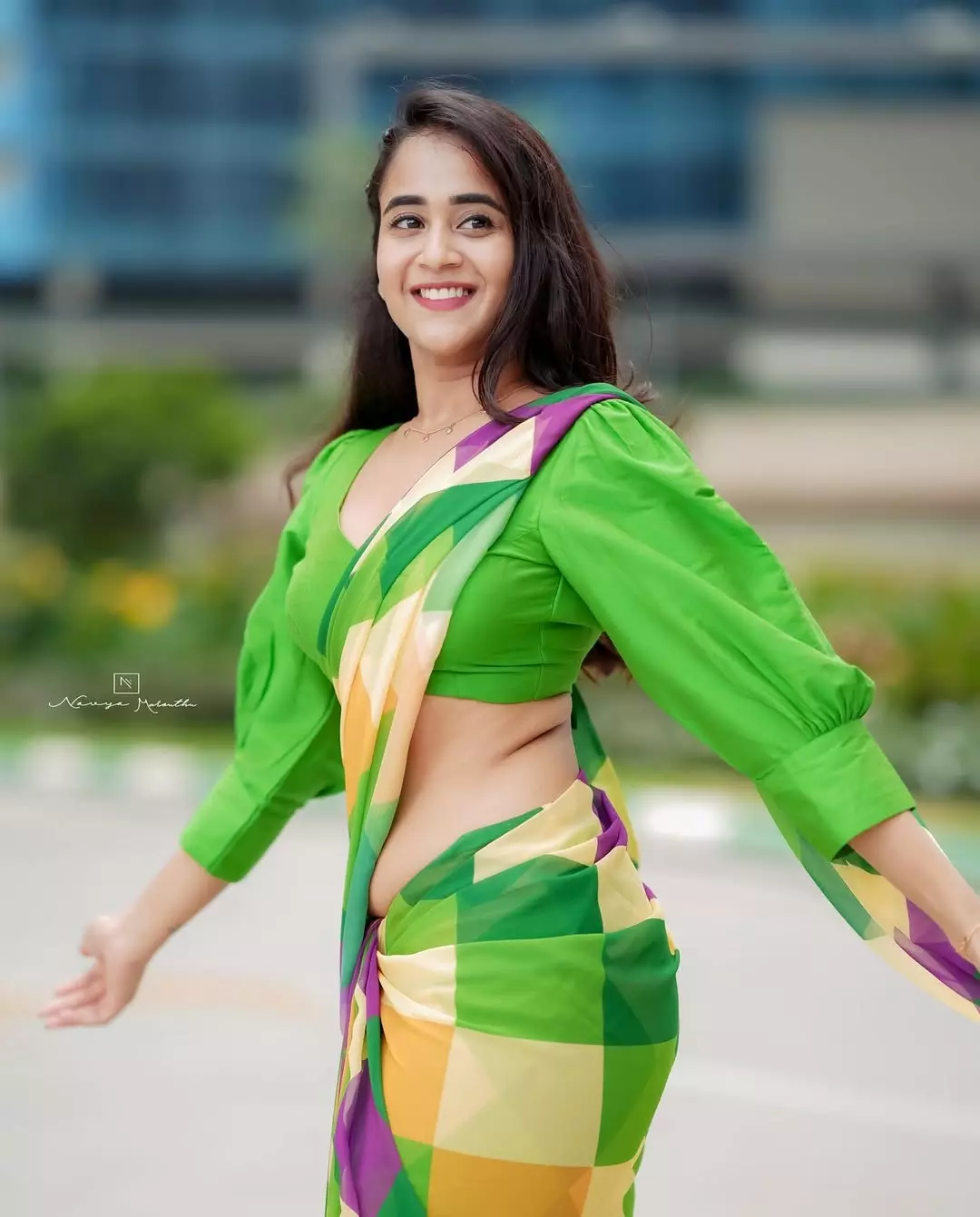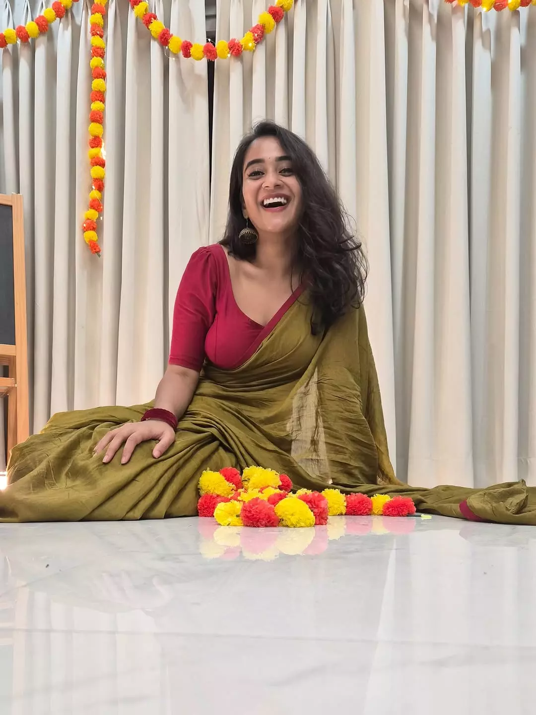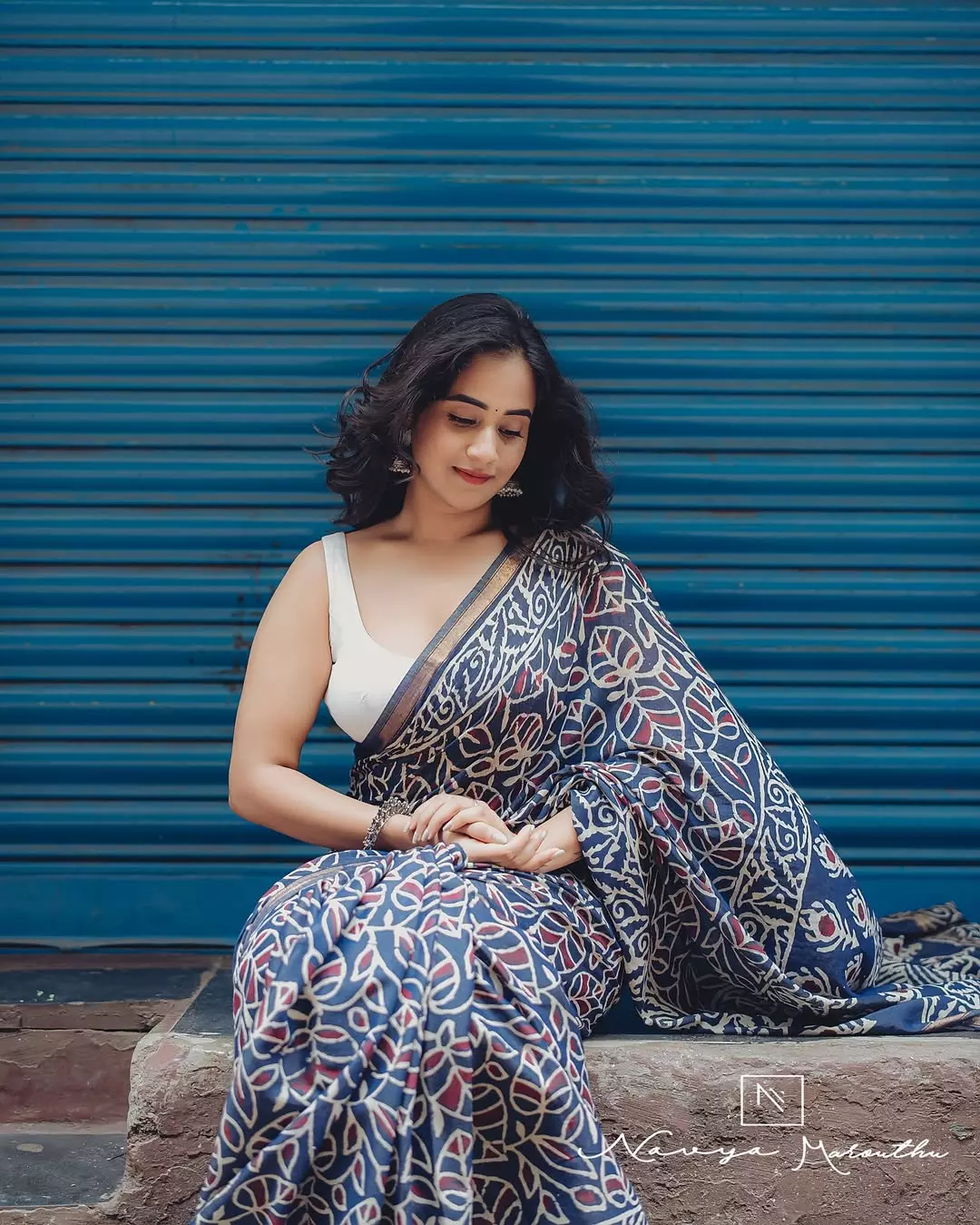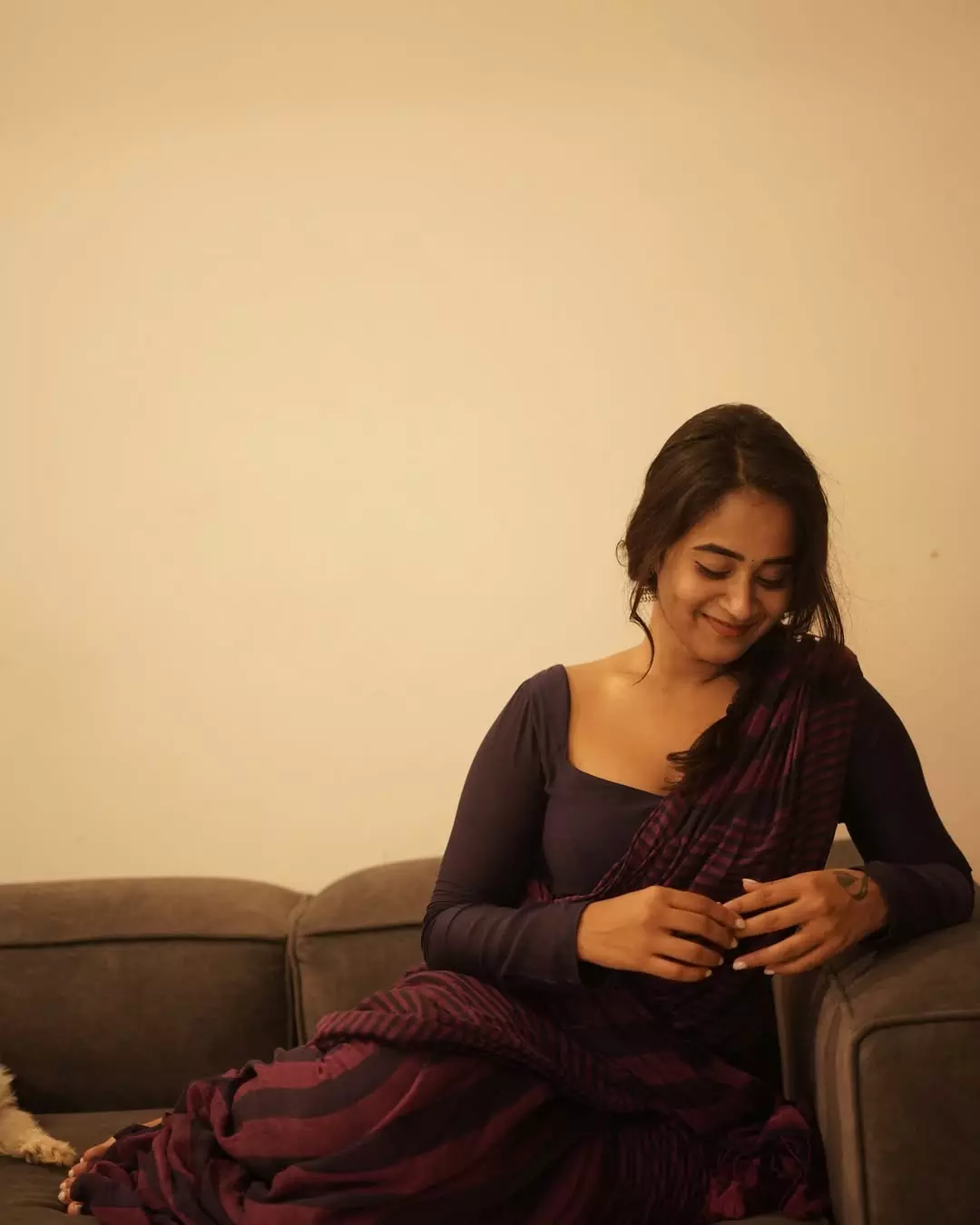 Deepthi Sunaina steals hearts in biscuit shade saree