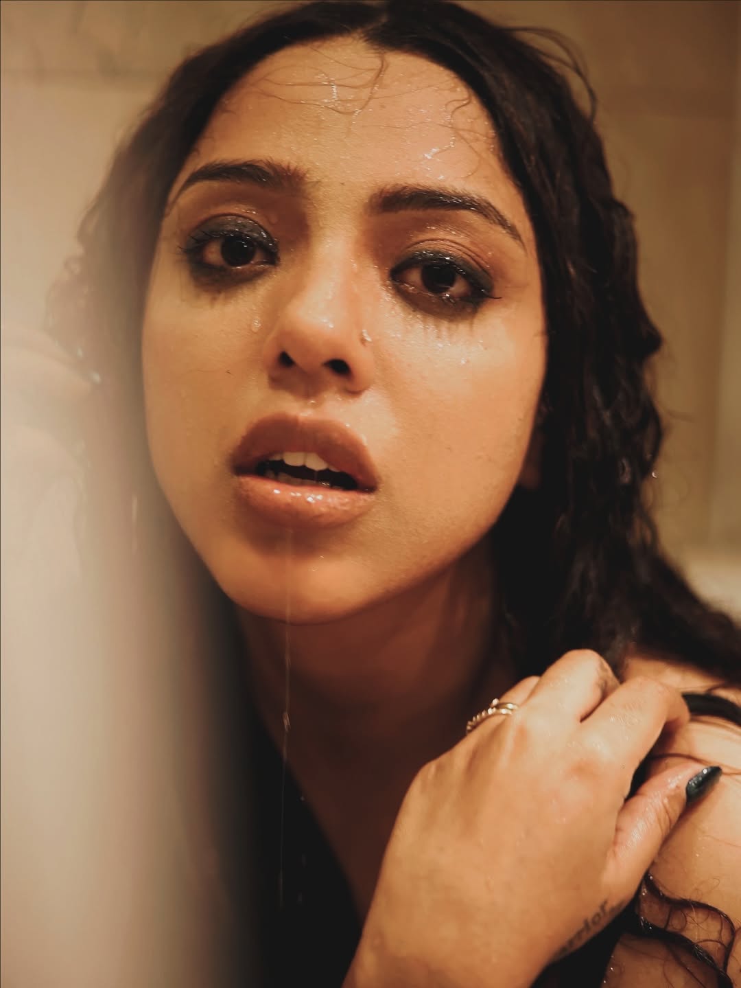 "Drenched in beauty, she wore the storm like an accessory." wrote the actress as a caption.
