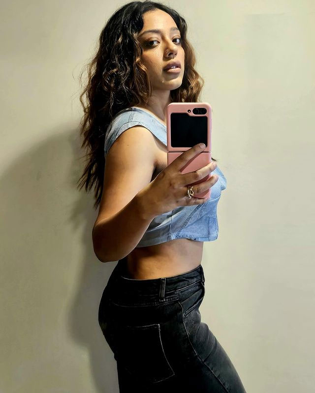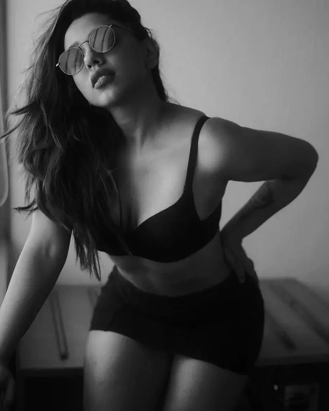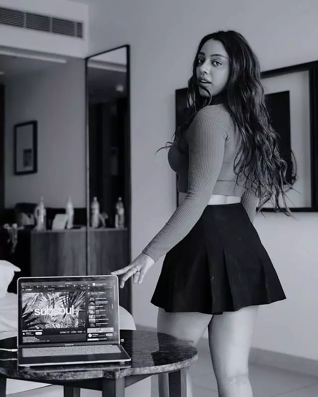 Recently she shared a new Instagram picture in black and white. She wore a ribbed long-sleeve top with a short pleated skirt. Her pose added confidence to the frame. The caption said, "Let’s get glam." The background included a laptop with music playing and she looks beautiful in the pics.