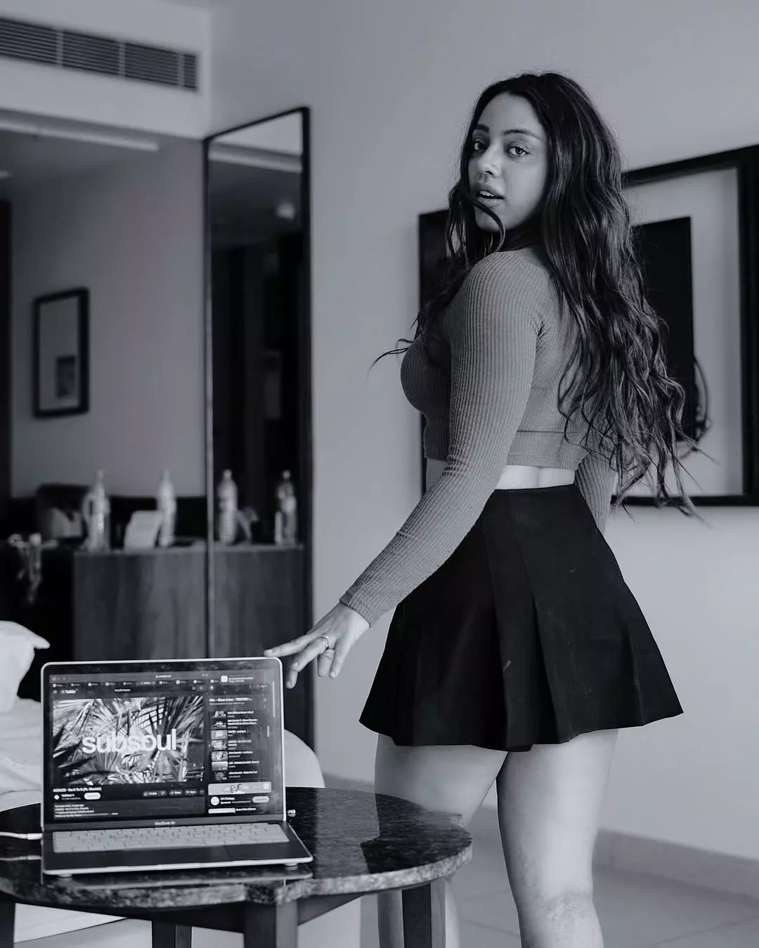 The shoot beautifully emphasizes Deviyani's versatile beauty, as she confidently poses amid the striking hues, giving off a serene yet powerful vibe. With every frame, she manages to strike the perfect balance between grace and strength, truly capturing the essence of her caption.