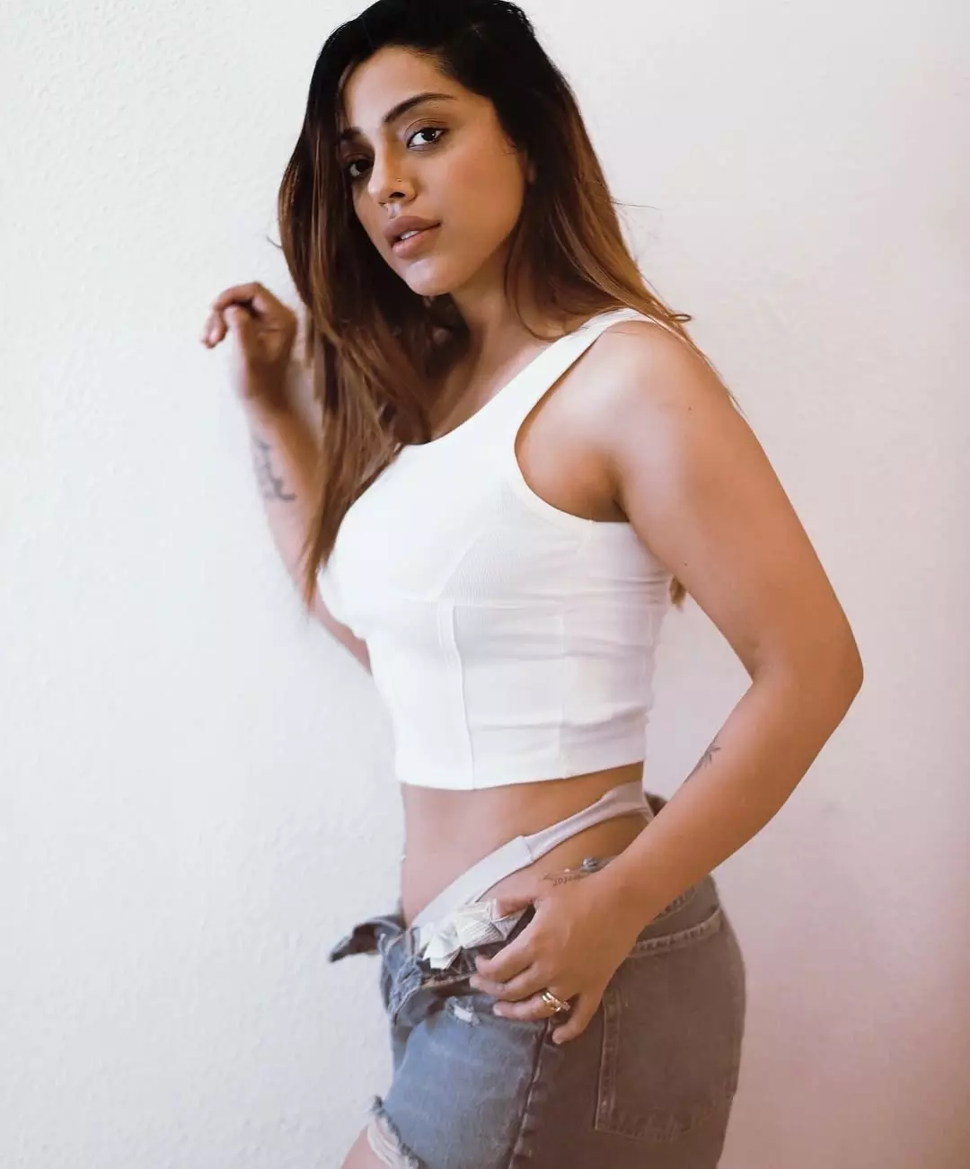 Recently, she took to Instagram to share some of her breathtaking pictures from a recent photoshoot. Wearing a white sleeveless crop top and high-waisted denim shorts, Deviyani looks ravishing in these photos. With her sensuous poses and alluring looks, she is making men go to their knees with these pictures. The belly button piercing added more beauty to the actress. Deviyani left her hair loose, giving casual but killer poses.