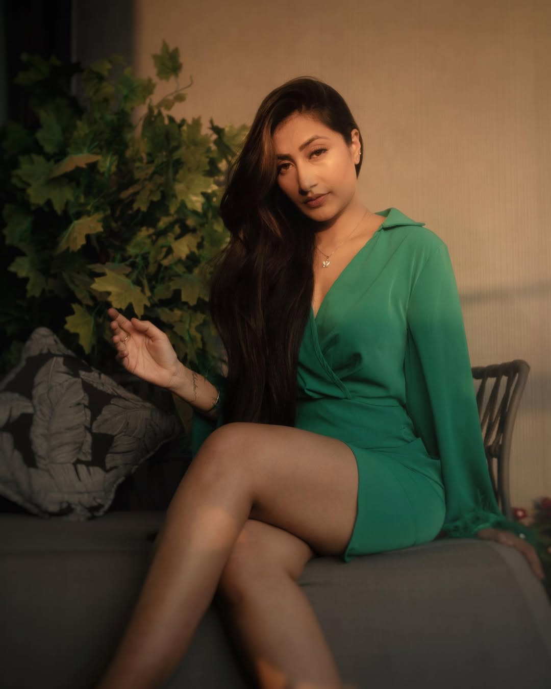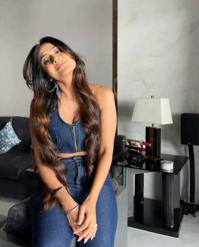 This image captures a similar spirit—poised, confident, and effortlessly stylish—making it a perfect addition to any fashion or lifestyle gallery. It celebrates individuality and the power of self-expression, much like Dhanashree herself continues to do across her growing career.