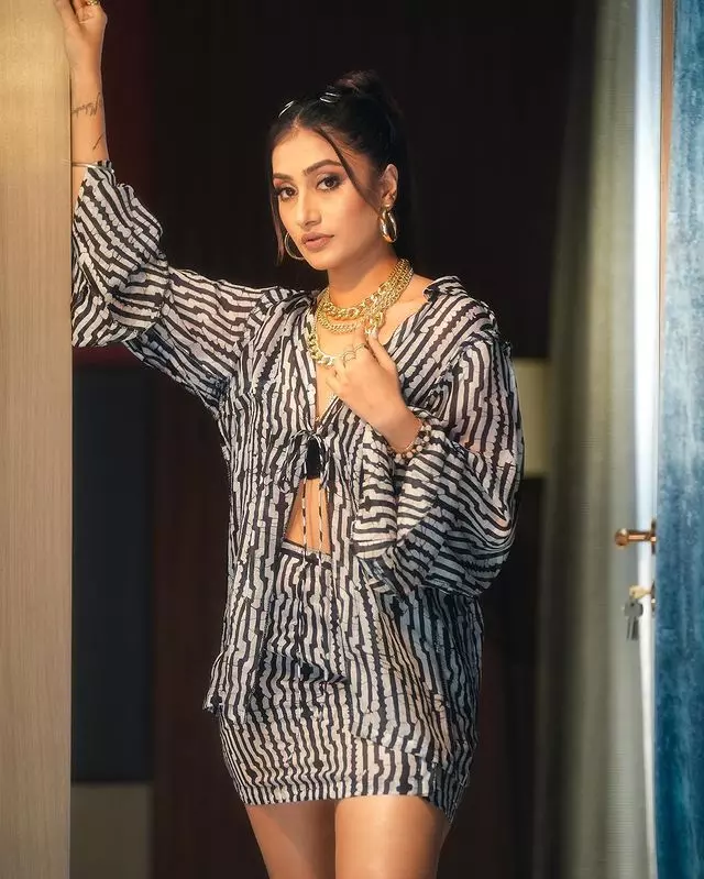 This look—featuring a sleek hairstyle and a bold, contemporary outfit—echoes the modern glam aesthetic that Dhanashree frequently embraces. Whether she’s performing high-energy choreography or attending events, her style always blends sophistication with a hint of boldness.