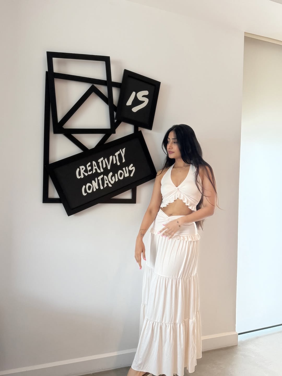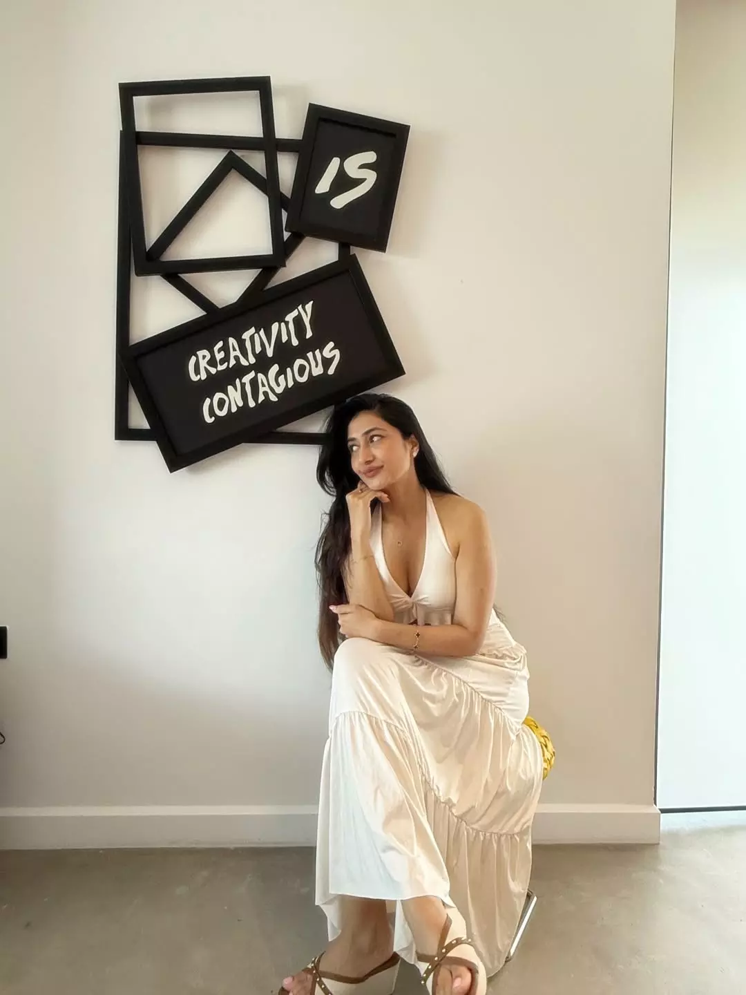 By: Priya Chowdhary Nuthalapti | 16 Aug 2025 7:45 PM ISTDhanashree Verma shared a new post on Instagram. She looked relaxed as she posed indoors at Canopy by Hilton, Dubai. She wore a white dress and kept her look simple and calm. The background had a stylish black wall with white writing.