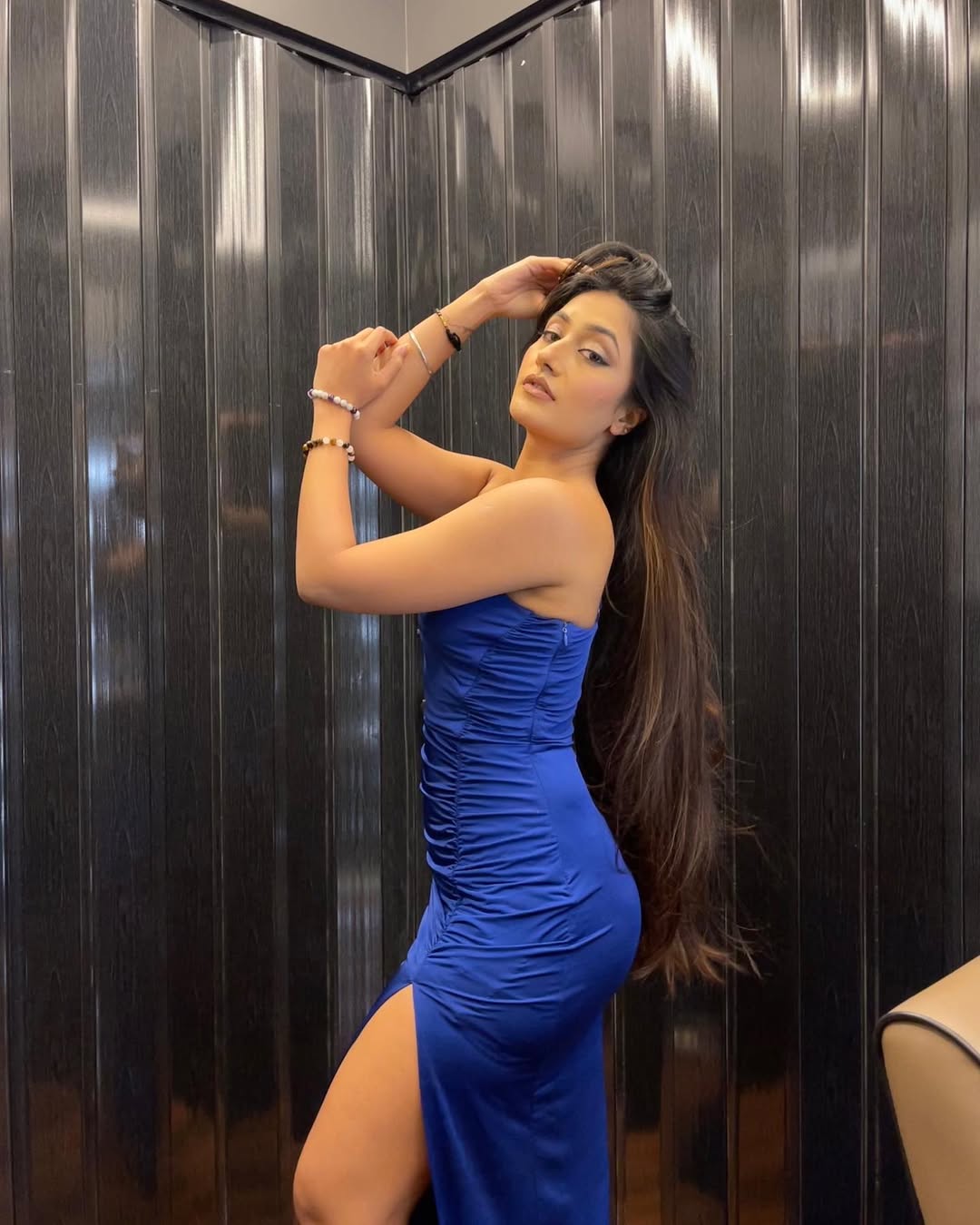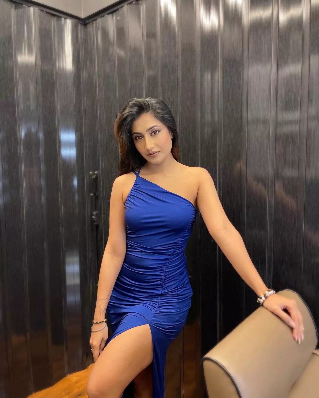 Dhanashree Verma shared a new post on Instagram. She looked relaxed as she posed indoors at Canopy by Hilton, Dubai.