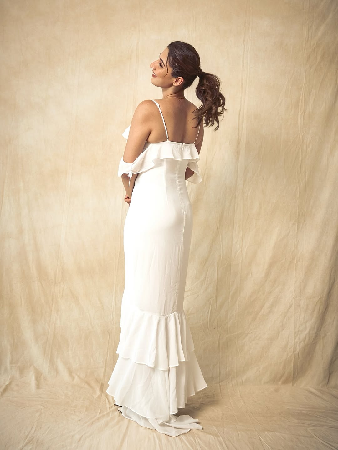 By: Priya Chowdhary Nuthalapti | 9 Aug 2025 9:29 AM ISTSinger and actress Dhvani Bhanushali once again proved that simplicity can be the ultimate sophistication with her latest look. She stunned in an off-shoulder white bodycon dress featuring delicate spaghetti straps and ruffled detailing along the neckline.