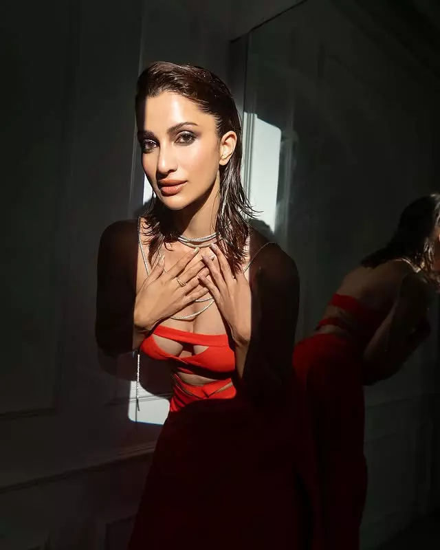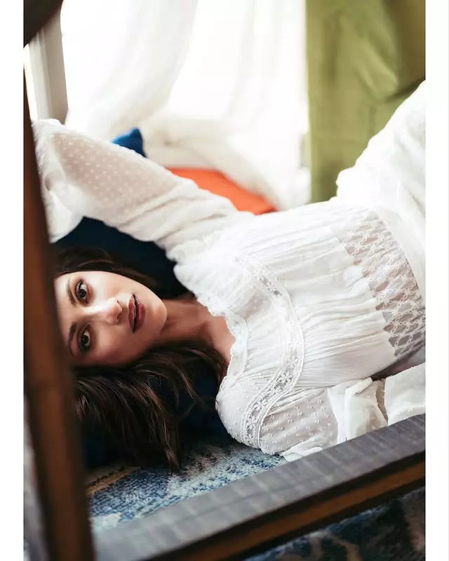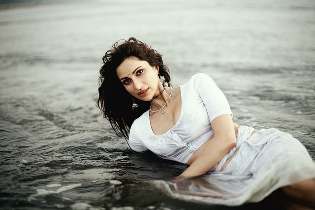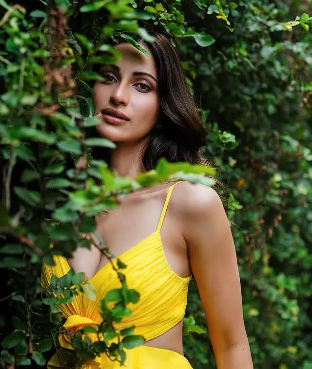 Diksha Singh radiates effortless elegance in a white lace slip dress, perfectly layered with a matching lace cardigan for a look that is both delicate and chic. The intricate lacework adds a touch of romantic sophistication, while the soft layering gives the outfit a timeless, graceful appeal.