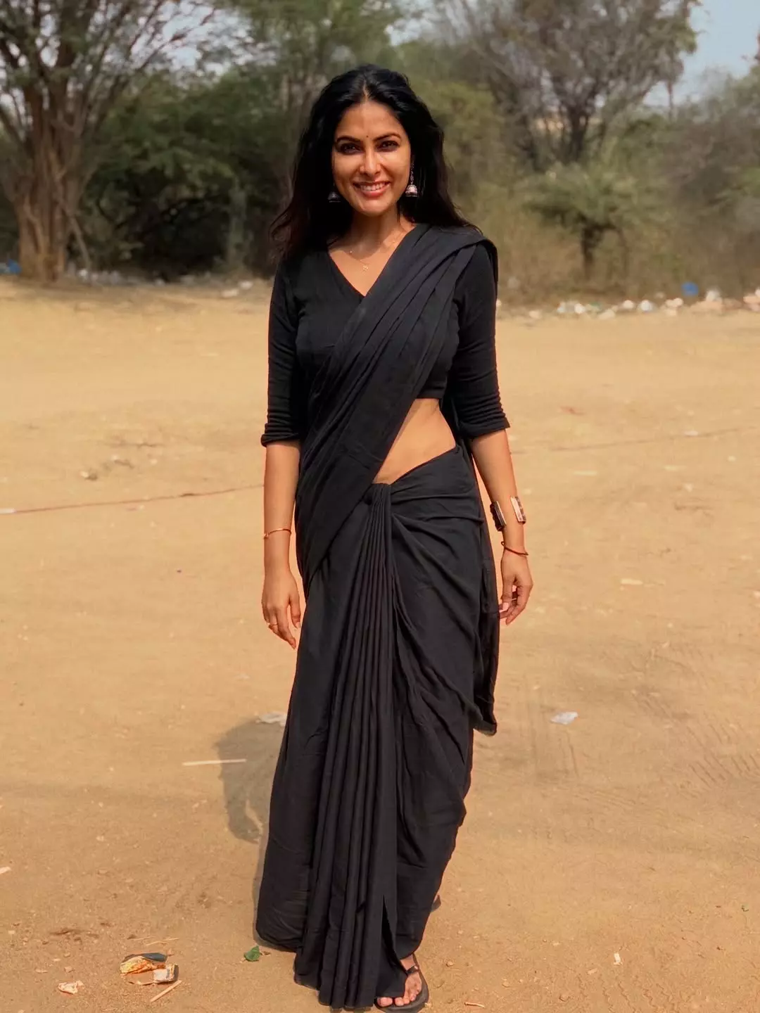 1 / 35Divi Vadthya’s Black Saree Photos Go Viral for Their Natural Feel