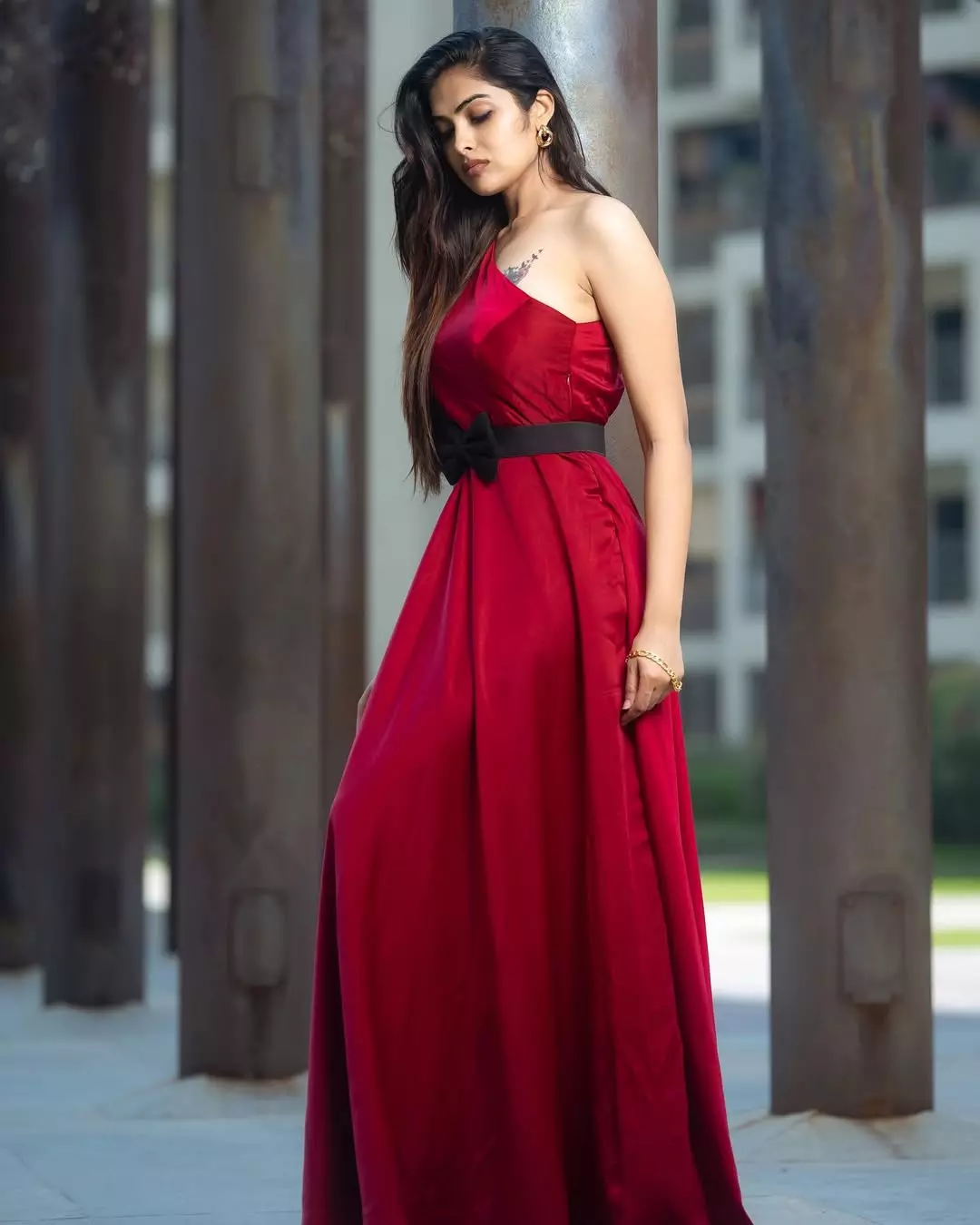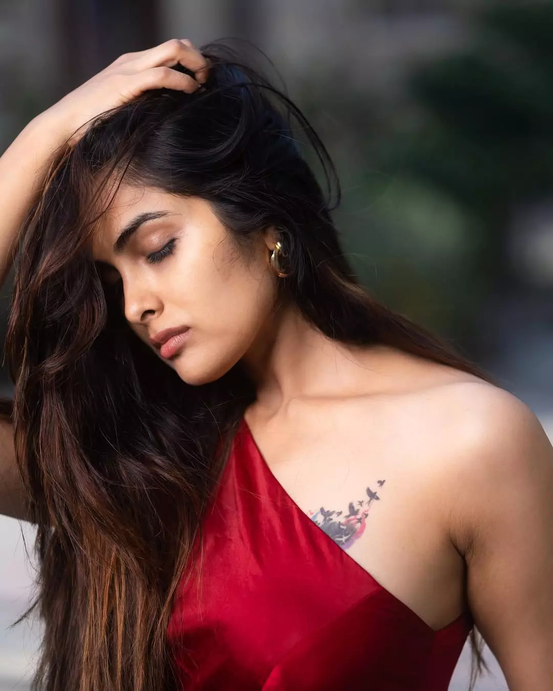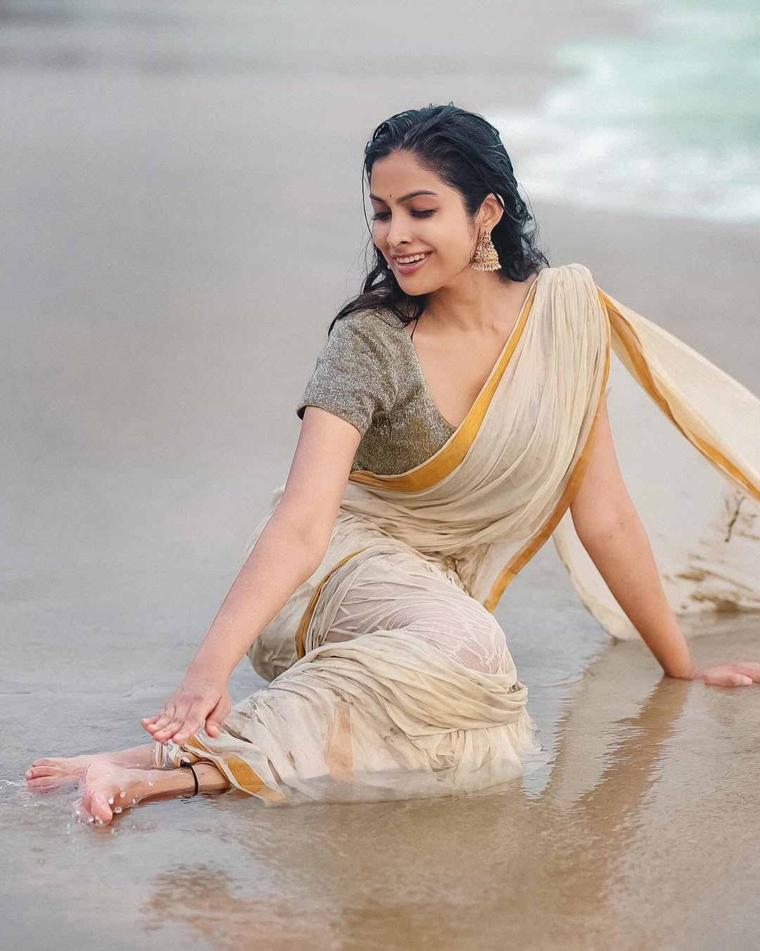 Her latest Instagram picture captures her in a traditional blue lehenga. The long skirt flows beautifully. The full sleeved blouse has colorful embroidery. Small bead details add charm to the look. She pairs it with a delicate hair accessory. Her smile enhances the appeal of the picture. She credits Navya Marouthu for styling. Studios19 LSP is the photographer. Chitti Papa handles the makeup. The picture is taken at Rejoy Club Hyderabad. She adds poetic lines to the caption making the post more expressive.