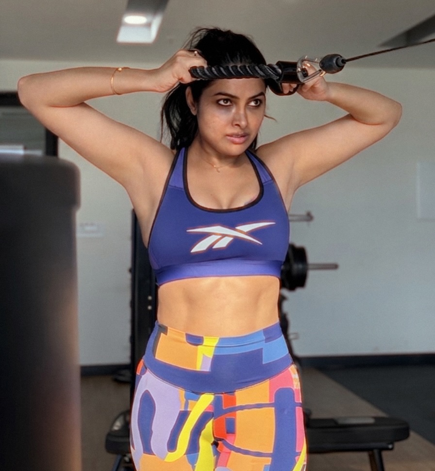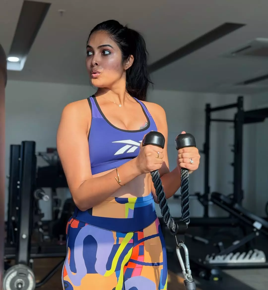 By: Tupaki Desk | 17 April 2026 11:54 PM ISTIn this powerful gym photograph, Divi Vadthya showcases her dedication and toned physique as she performs a cable tricep pushdown exercise. Wearing a vibrant blue Reebok sports bra and colourful patterned leggings, she focuses intently with strong arms raised, highlighting her fitness journey and disciplined lifestyle.
