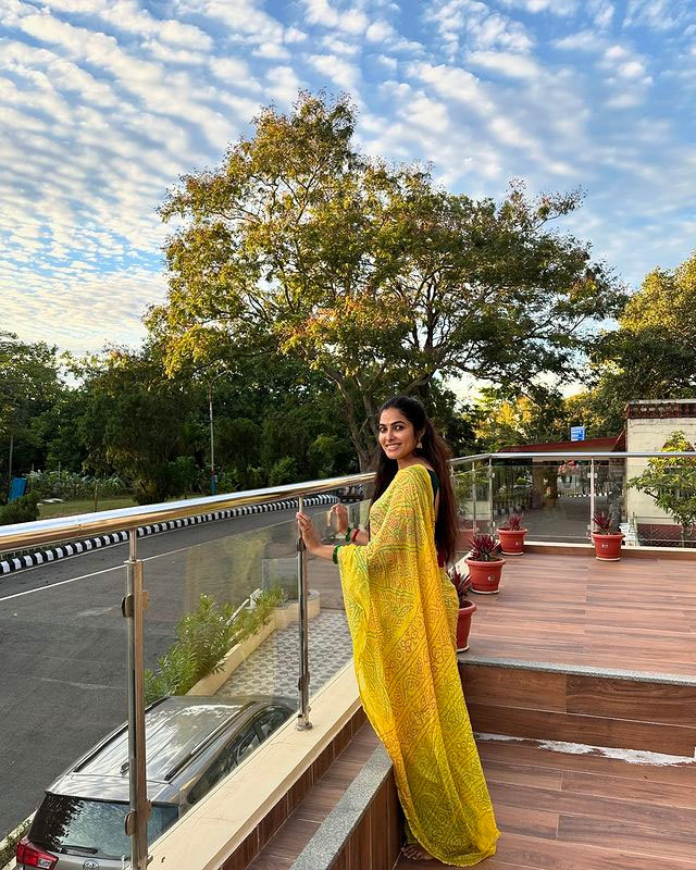 The photo was clicked by @i_ak_photography, and her stunning makeup was done by @srujanas_contour and team.