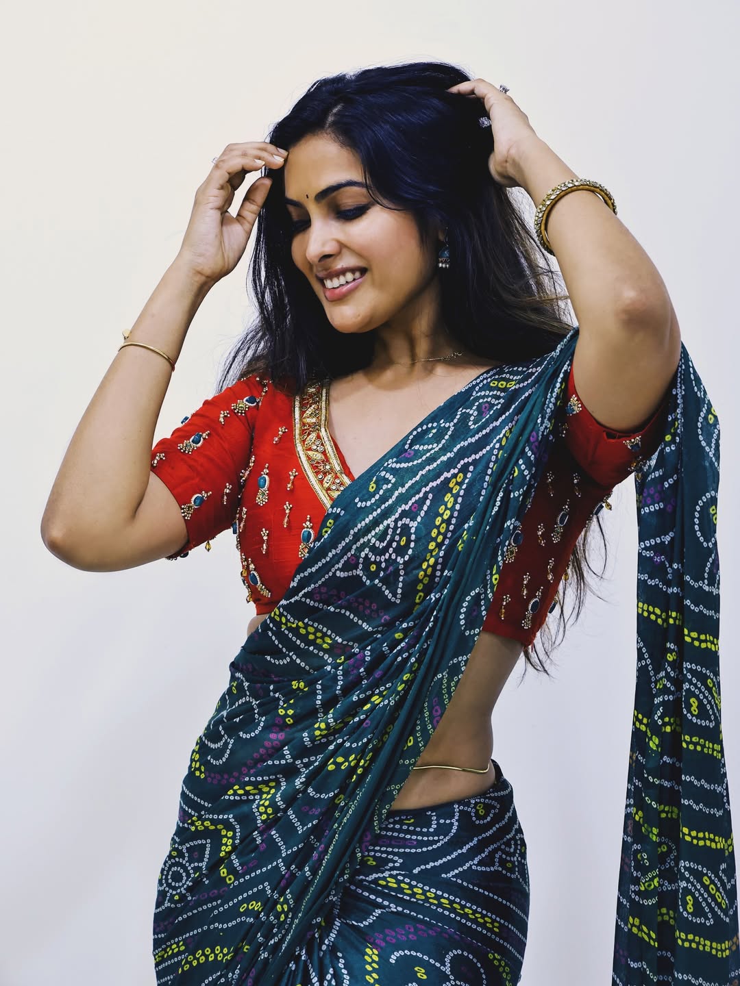 In Karmastalam, Divi’s character Devika is shown as a brave protector who fights for her people. This role is a major milestone for her career because it highlights her ability to handle powerful, dramatic characters. The film is directed by Rocky Sherman and produced by Harshavardhan Shinde, with music by Sai Karthik. It also features Chunky Panday as the dangerous Rudra and Archana Shastry as Maa Durga. The movie will release in Telugu, Hindi, Tamil, Kannada and Malayalam making it a huge project for Divi at a national level.