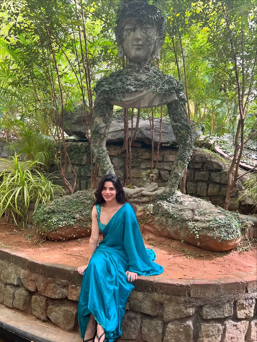 By: Priya Chowdhary Nuthalapti | 18 Aug 2025 4:50 PM ISTDivyabharathi recently shared an elegant picture on her Instagram. In the post, she is seen wearing a turquoise saree, accessorized with a stunning blouse. The image is set against a lush green backdrop. Her natural pose, with a hand on her forehead as if to shield her eyes from the sun, gives off a relaxed yet graceful energy.