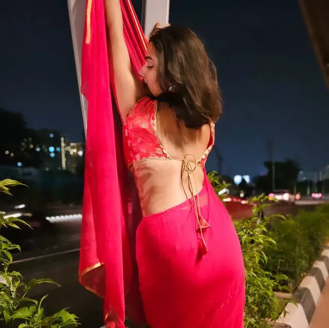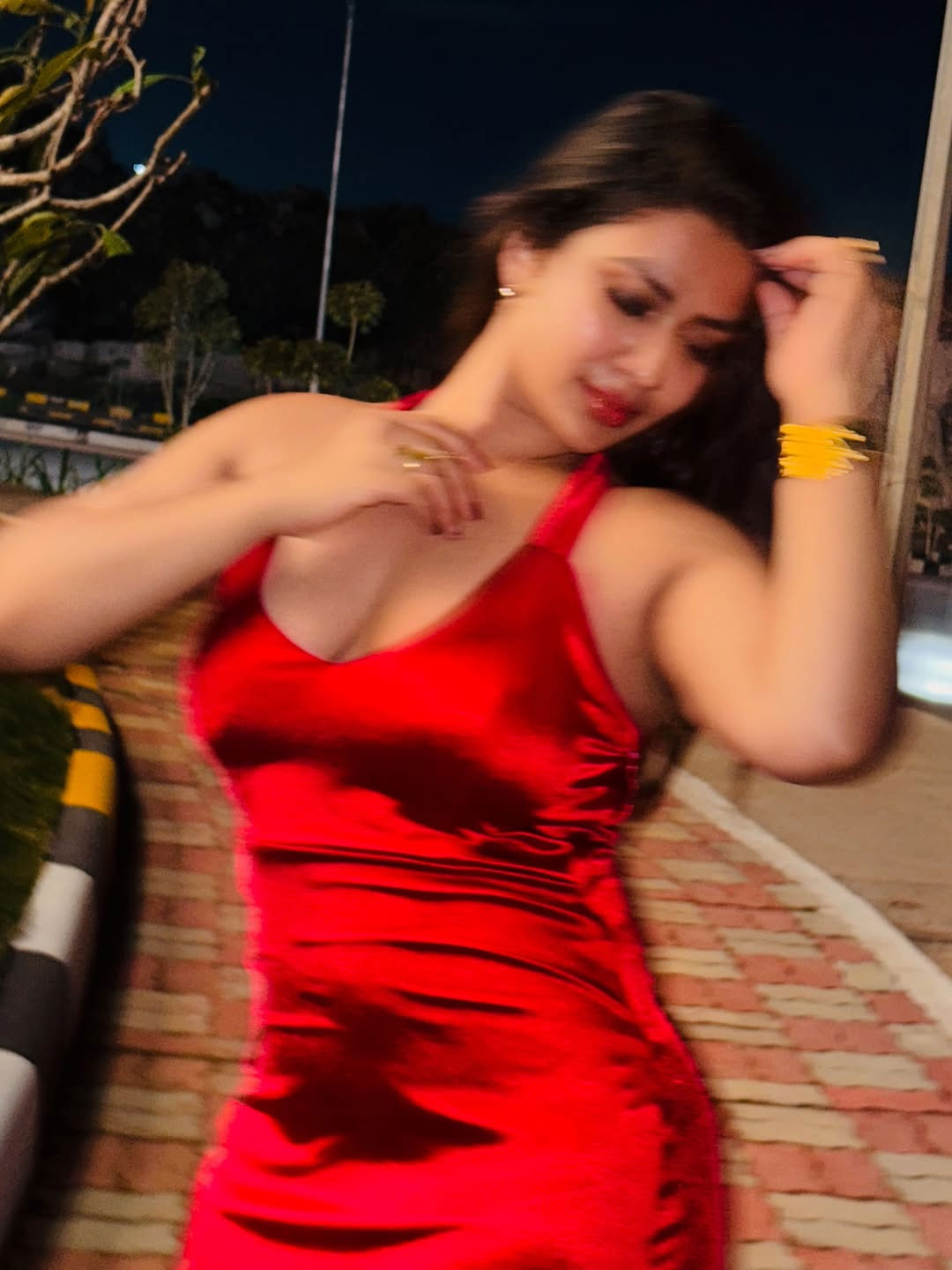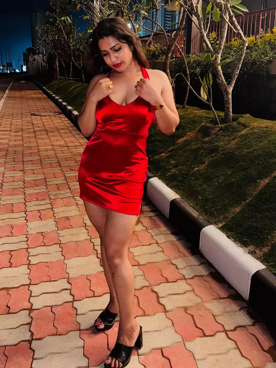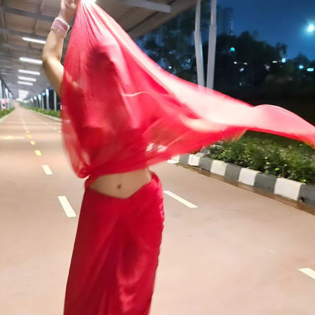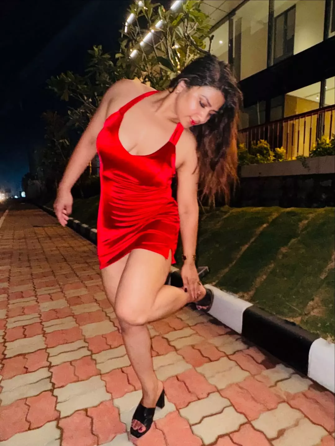The recent post on her feed showcases herself in a one-piece which is a red colored dress with sleeveless. The actress posed for pictures on the streets, during the night time and some of them are blurred, to suit the mood.