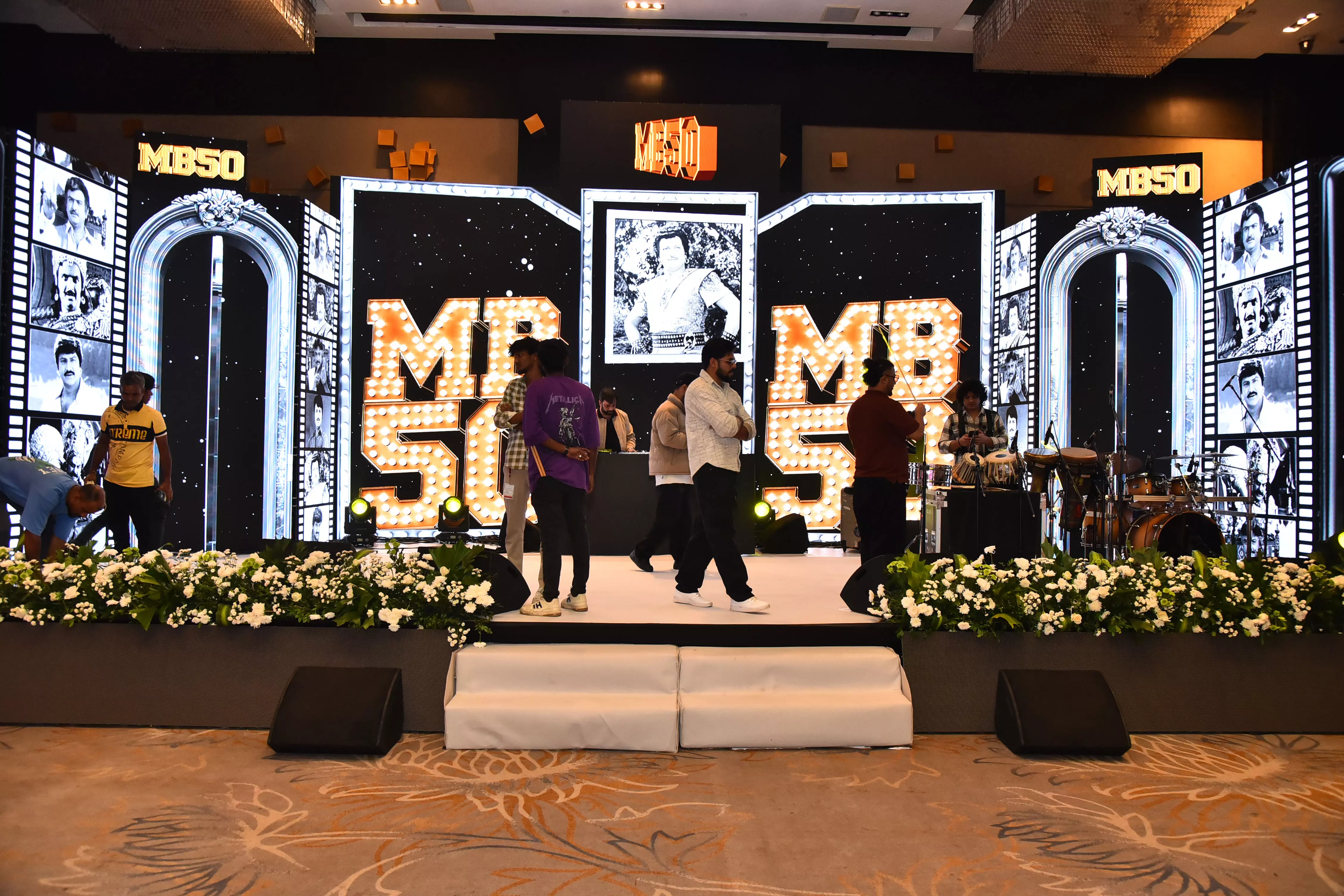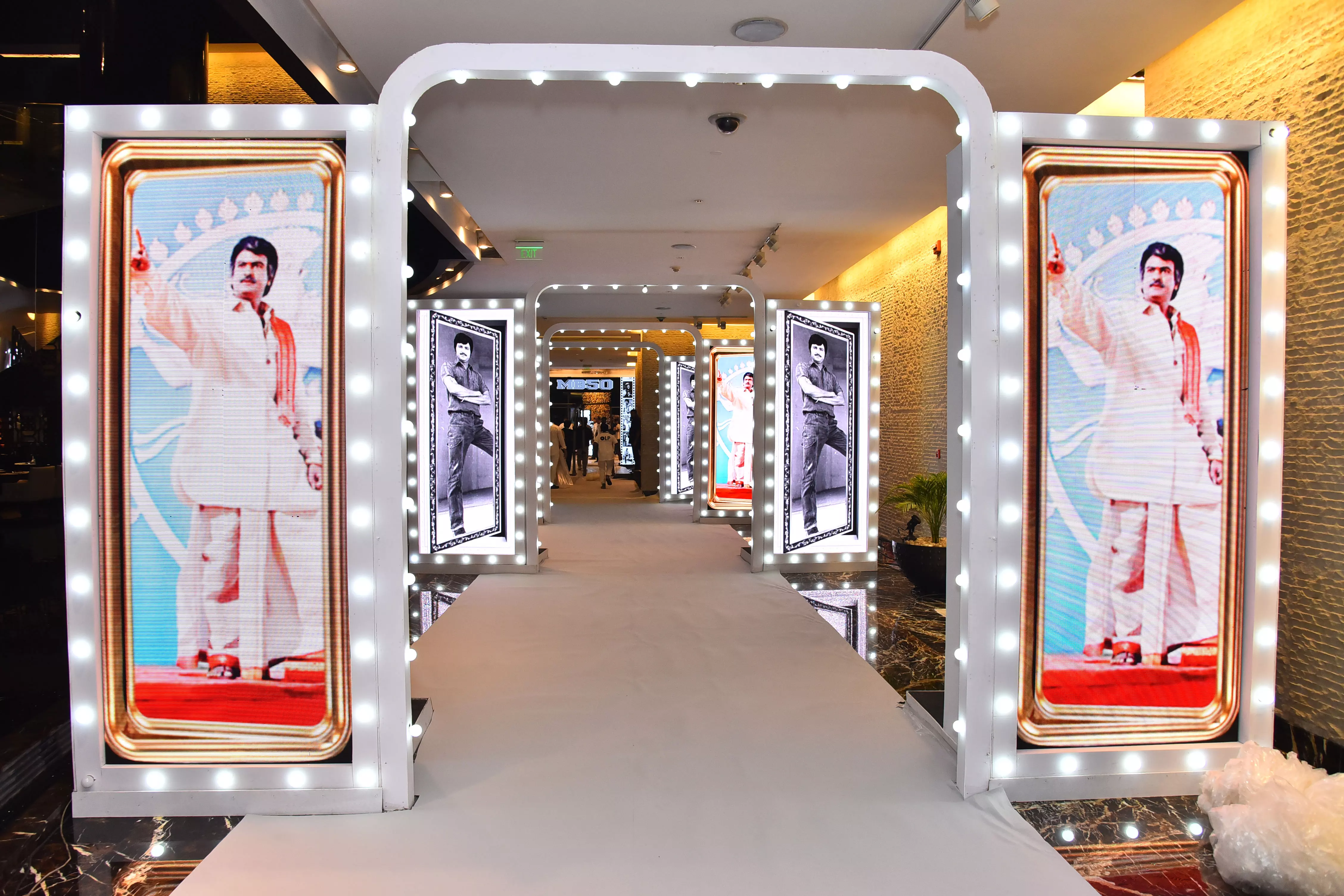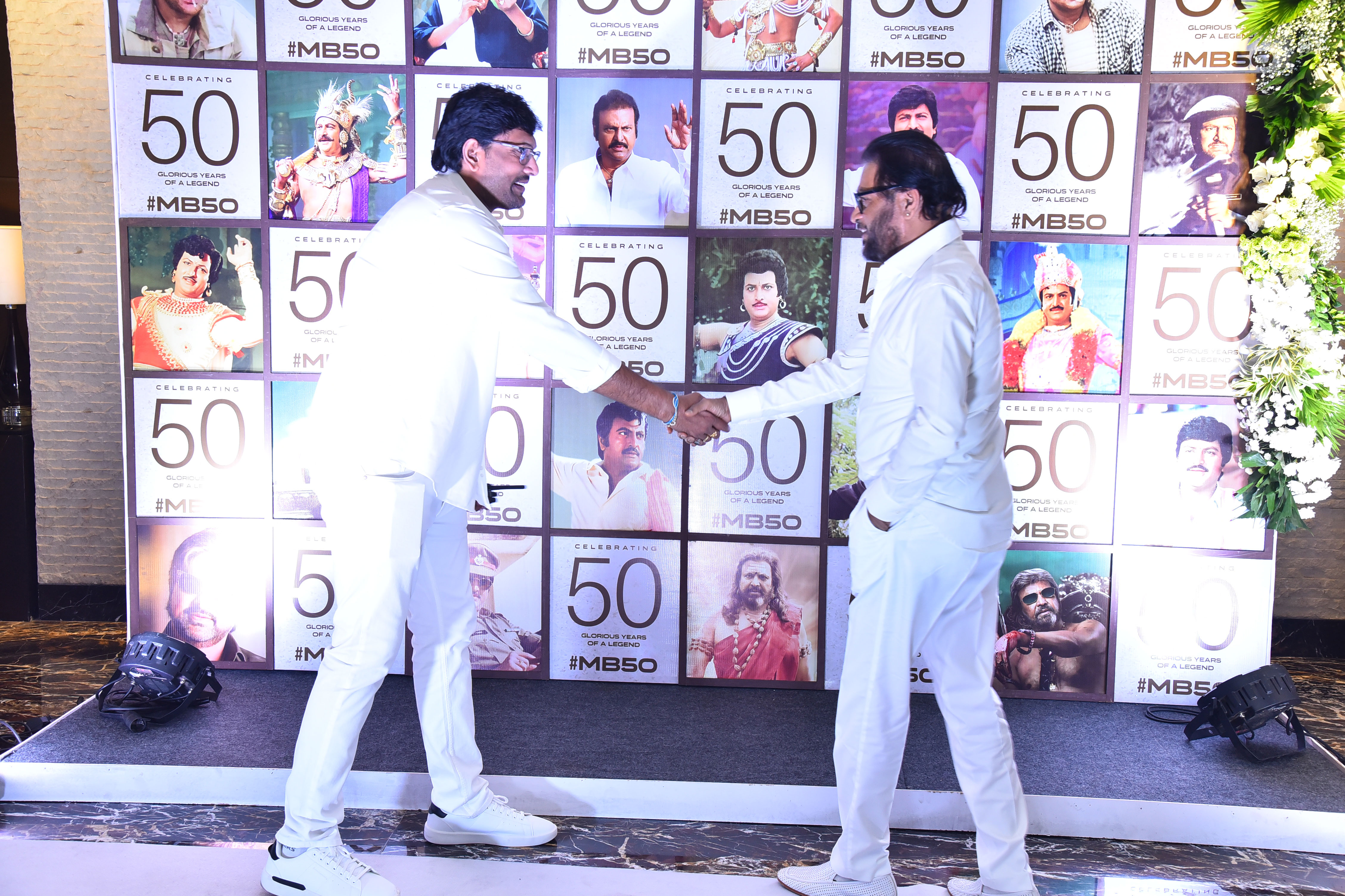 The golden jubilee event is filled with touching moments, rare photographs, and appearances by well-wishers and top stars. The luxurious gold-themed décor, symbolizing five decades of achievement, adds to the grandeur of the occasion. His children — Vishnu Manchu, Manoj Manchu, and Lakshmi Manchu — meticulously crafted the ceremony, filling it with emotion, elegance, and pride.