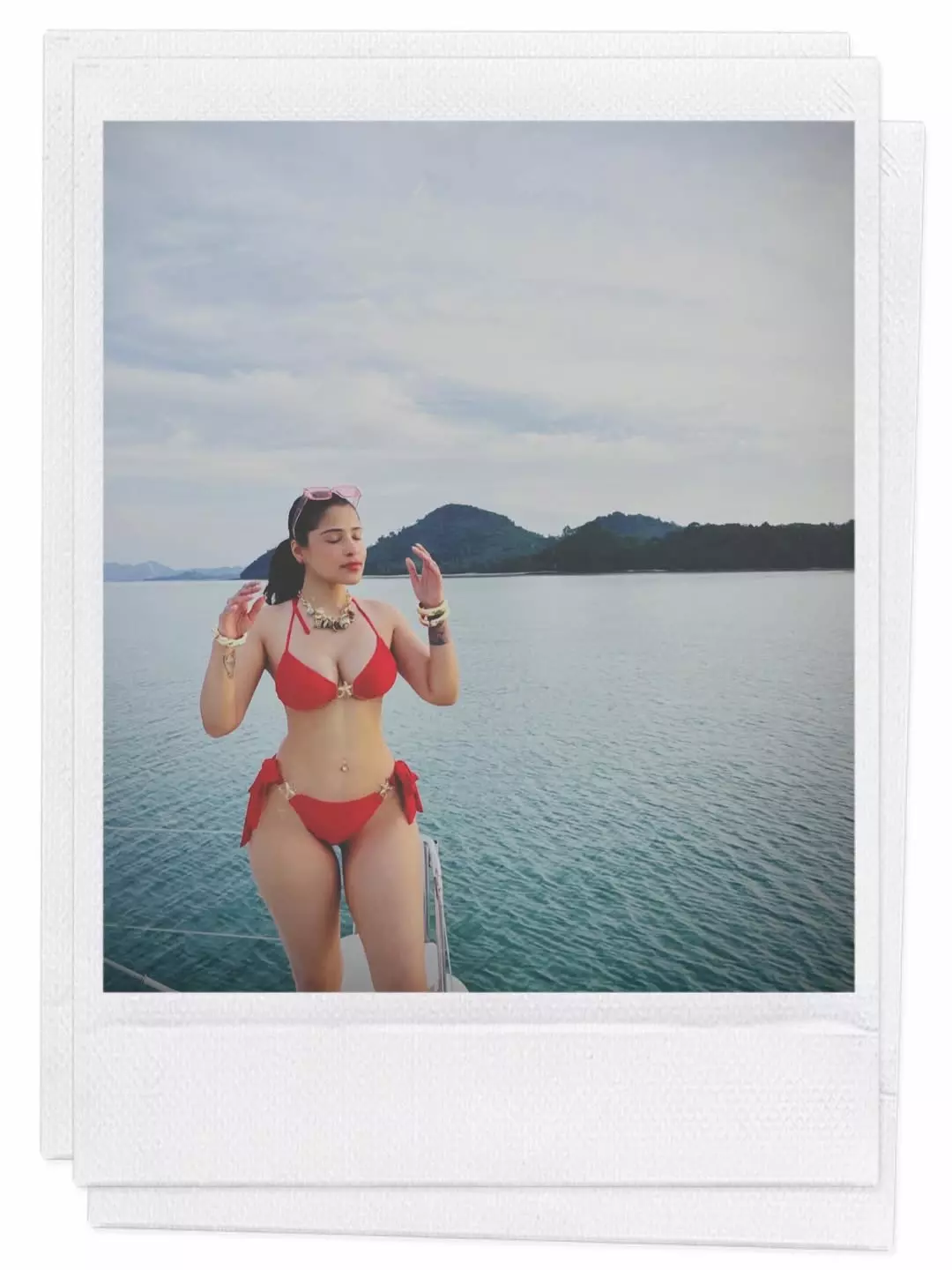 Edin Rose shared a new photo on Instagram. She is seen enjoying her time on the water. She wore a red bikini and added stylish jewellery. Her look was styled by Ichha Abrol. She also tagged Oneless Official for the bag and Bijoux Bling Store for the jewellery.