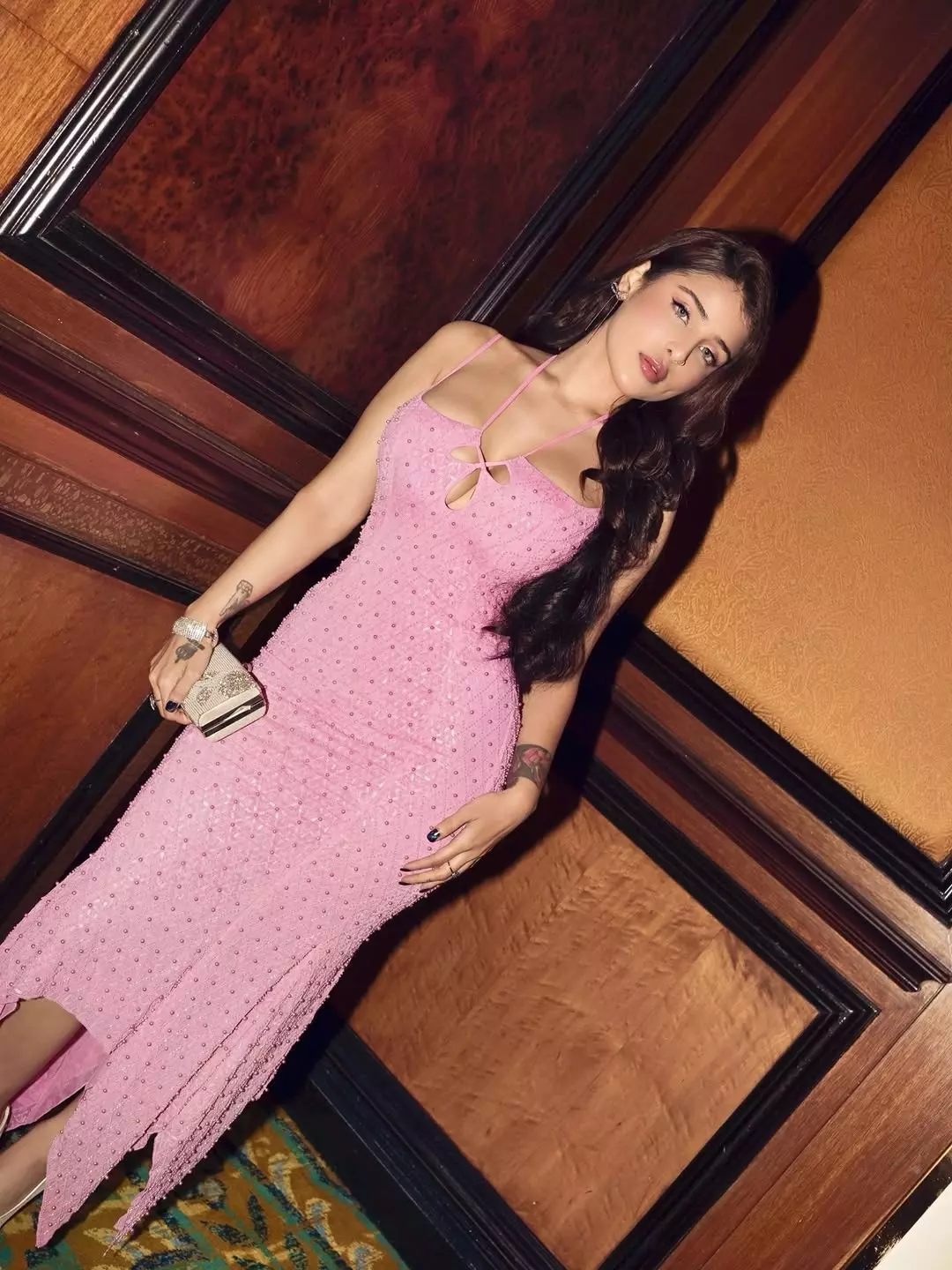 Edin Rose shared a new picture on Instagram in a soft pink dress. Her look was elegant and stylish. She held a silver clutch in her hand and long hair fell beautifully over her shoulder. The lighting in the picture added a dramatic effect. Her caption was short but powerful. She wrote, �that girl.� These words showed her confidence.