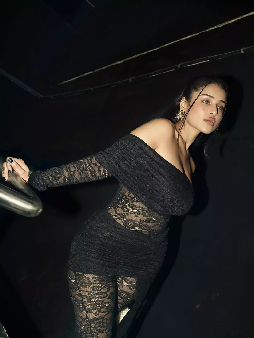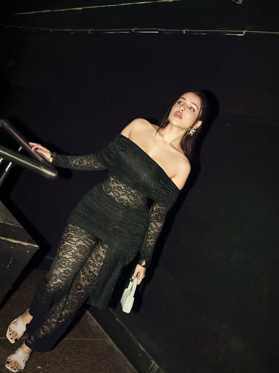 Actress Edin Rose turned heads with her striking fashion statement in a stunning black lace outfit that effortlessly blended elegance and boldness. The off-shoulder design showcased her graceful neckline, while the intricate lace detailing on the sleeves and leggings added a touch of sophistication and sensuality. Her minimalistic makeup, perfectly styled hair, and statement earrings complemented the look, making her appearance both fierce and classy.