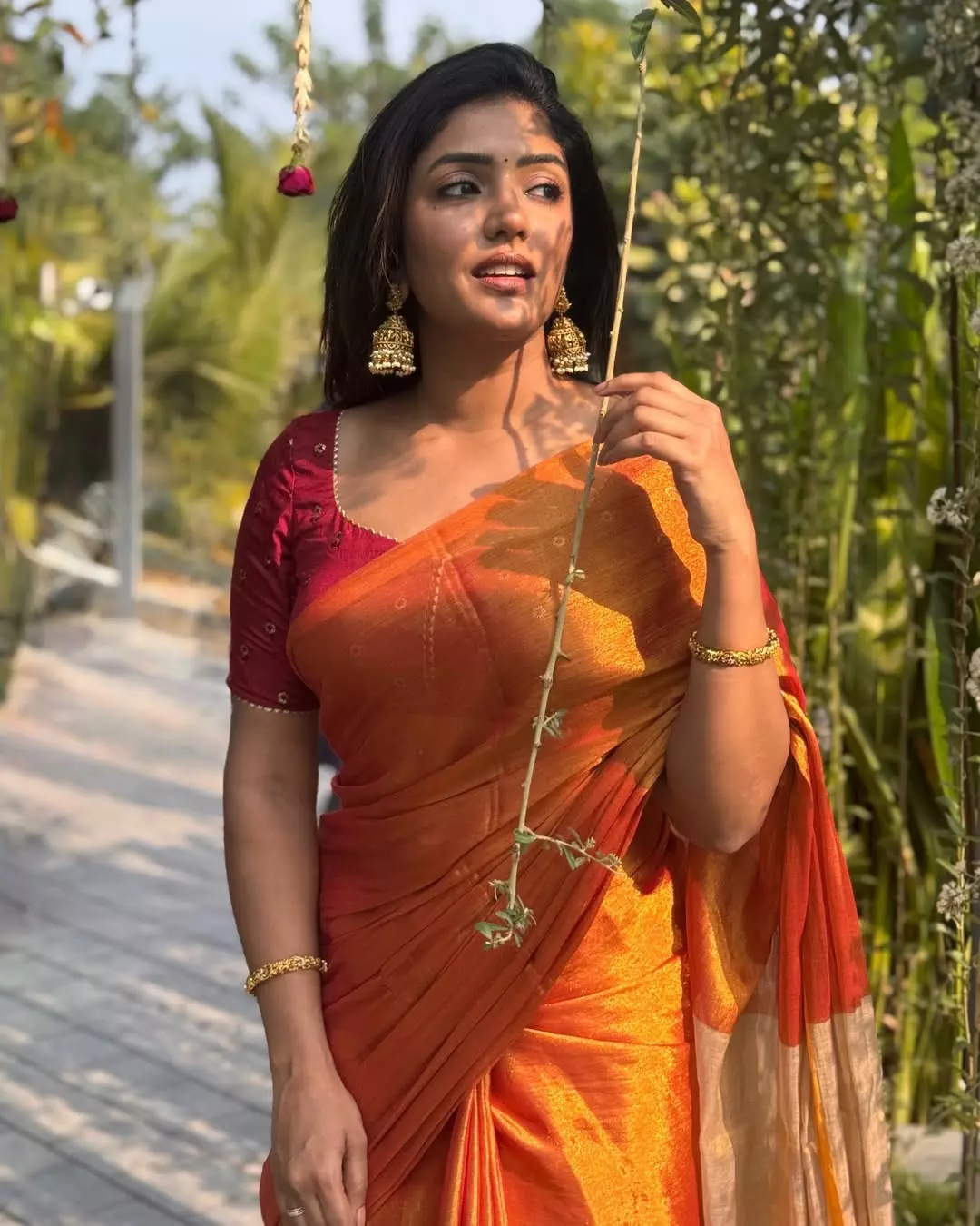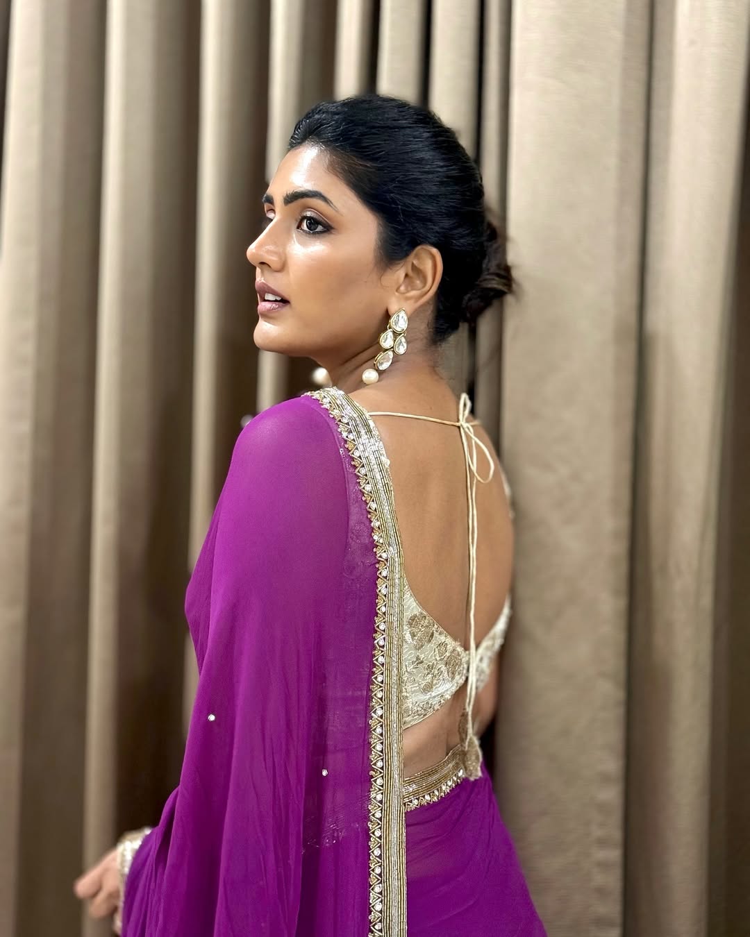 Eesha Rebba shared a new post on Instagram. She wore a soft beige saree with a deep red blouse. Her smile in the photo made the picture warm and natural. She added matching earrings that gave her a traditional touch. Her hair looked simple and free. She leaned slightly on the wall and looked straight at the camera. The photo captured her charm with ease.The caption on her post read “🌳”.
