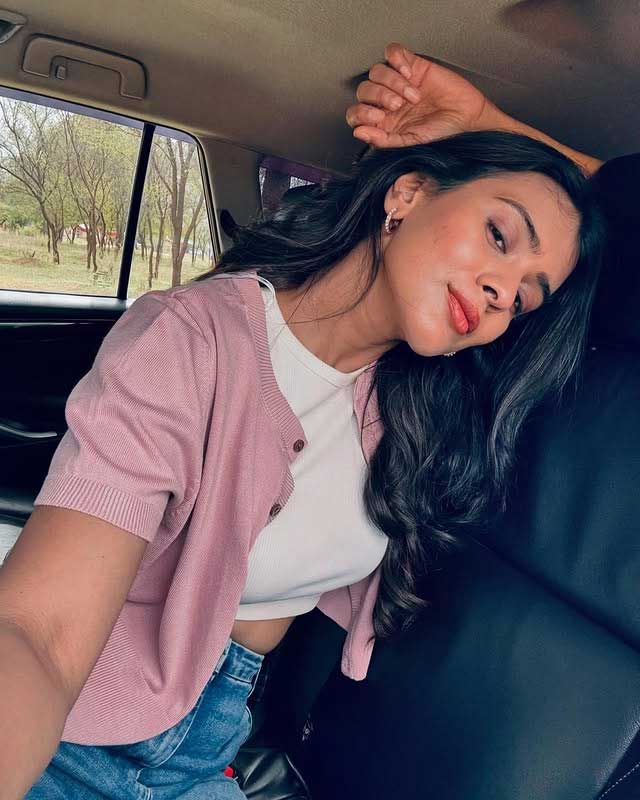 With eyes closed and a serene expression, she exudes calm confidence, letting her natural beauty do all the talking. The relaxed outfit and soft lighting create a raw, unfiltered vibe that speaks volumes about her versatility and comfort in her own skin.