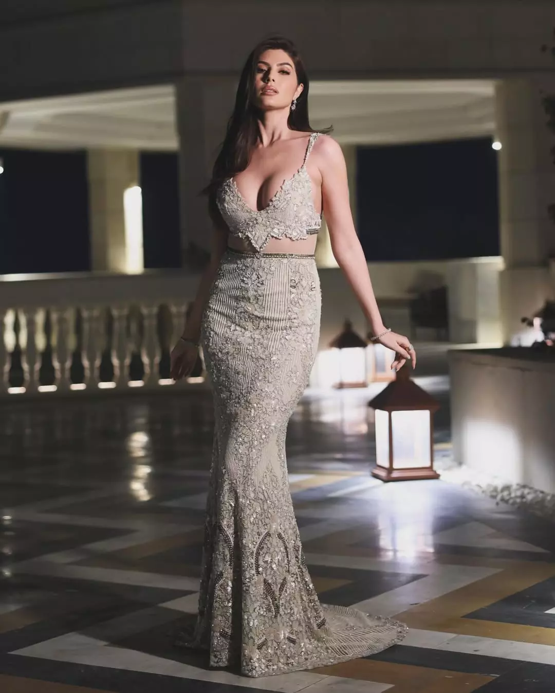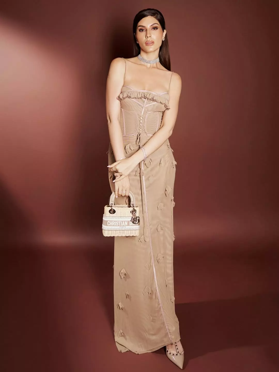 By: Tupaki Desk | 20 Nov 2025 11:51 PM ISTElnaaz Norouzi serves pure cinematic seduction, latte corset laced tight with ruffled edges while a fringed midi skirt sways like film reels in the wind. Sleek ponytail, diamond choker, mini straw bag—she’s ready for the red carpet and the big screen. See you at the movies #Mastiii4 @rubans.in @oakpinionpr @akoirah_jewellery @namitakothari29 @huelleyrose @dior @maisonvalentino @sohail__mughal___—the Khido Khundi & Dev DD bombshell just dropped the hottest premiere invite.