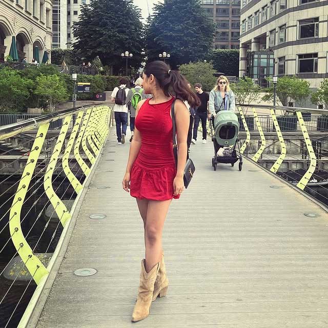 By: Tupaki Desk | 3 Jun 2025 10:34 AM ISTEsther Anil shared a bright and cheerful photo on Instagram, captioned “Summer in London ☀️❤️”. In the post, she’s seen standing in a charming floral walkway smiling warmly at the camera. She is seen wearing a red dress and beige boots, she looks happy and relaxed. The photo has a colorful background filled with vibrant yellow, pink and green flowers potraying to the summer vibe. Her caption and the sunny setting suggest she’s enjoying her time in London, and the post is set to the upbeat tune of Natasha Bedingfield’s “Pocketful of Sunshine.”