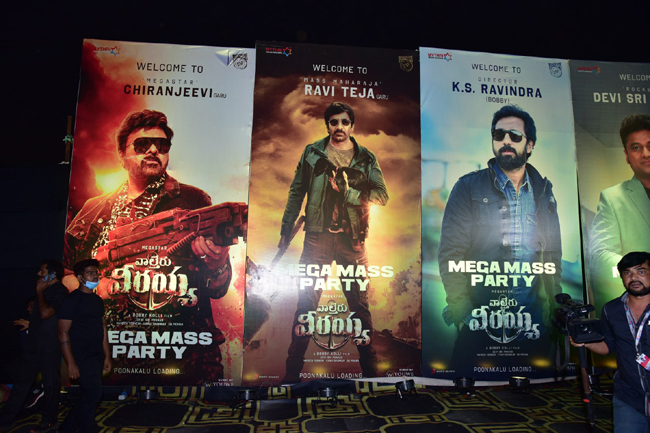 Megastar Chiranjeevi MassMahaRaja RaviTeja WaltairVeerayya Mega Mass Party 2