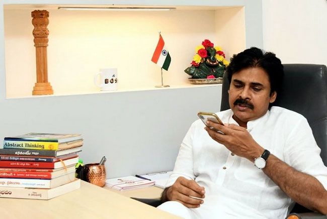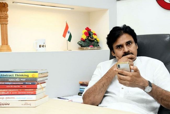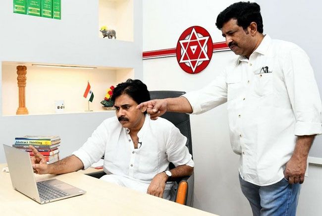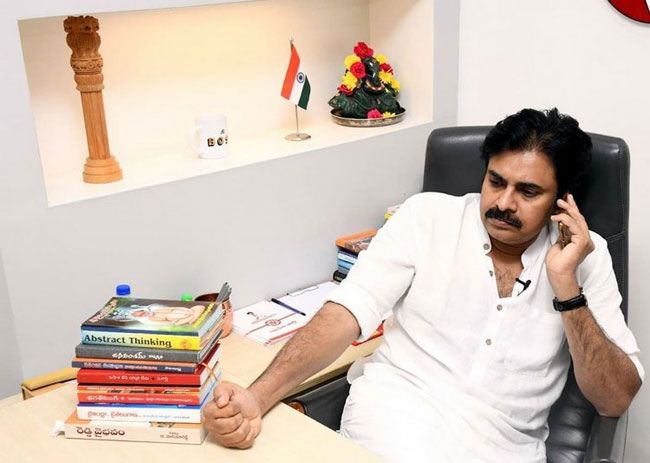 Pawan Kalyan Snapped In Janasena Office