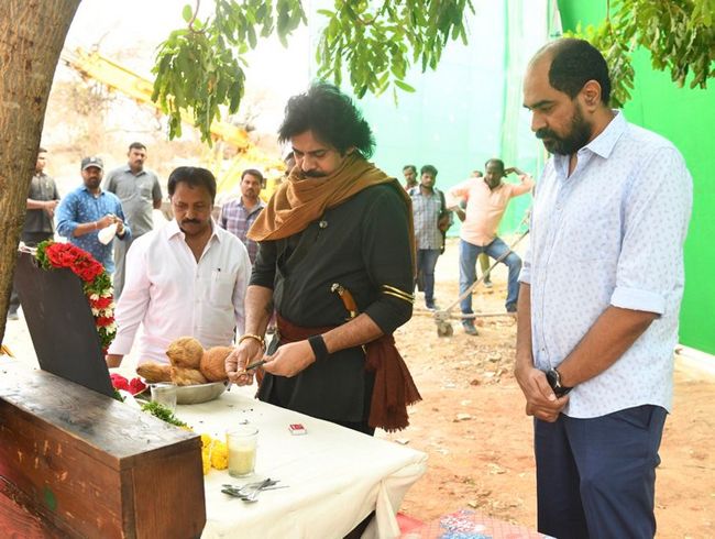 By: Tupaki Desk | 11 April 2022 4:46 PM ISTSpecial Pooja on the sets of Hari Hara Veera Mallu