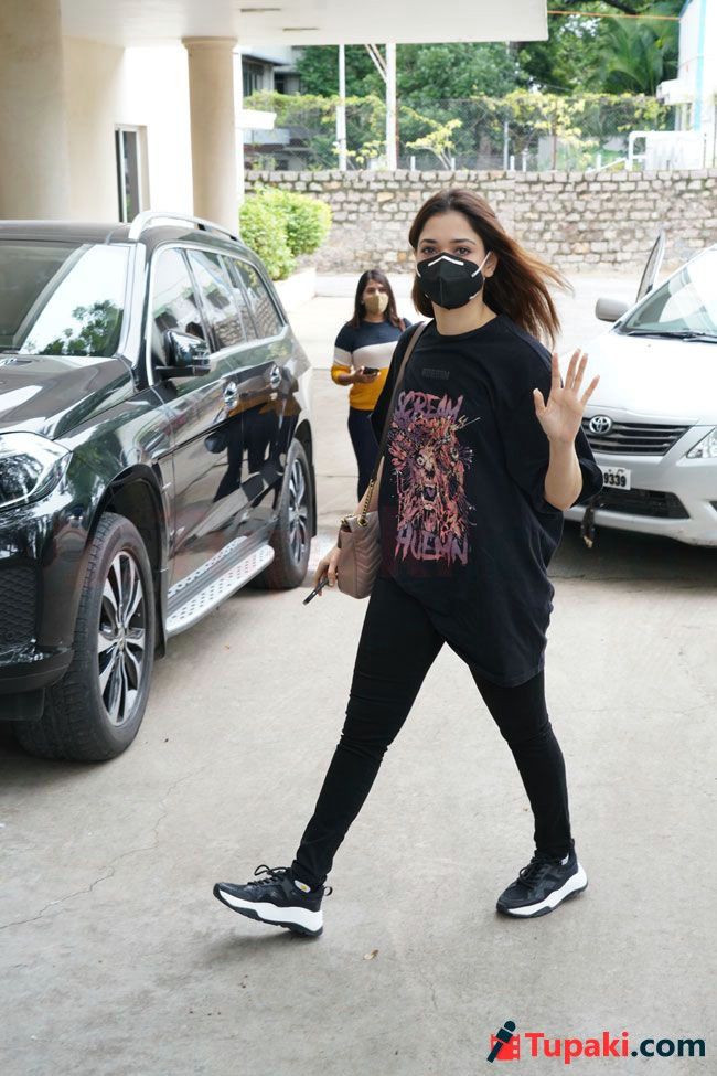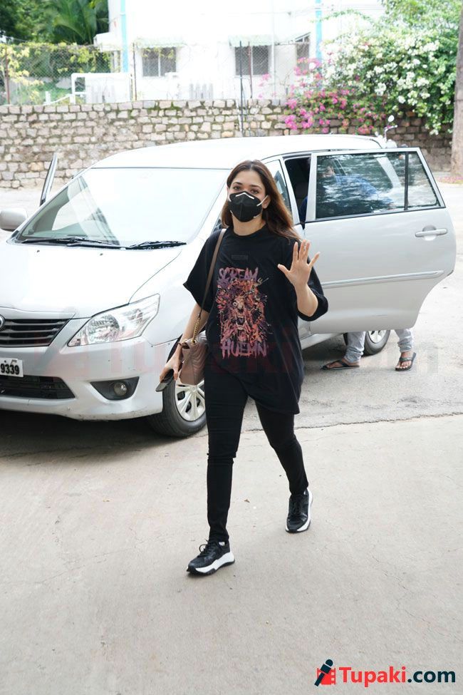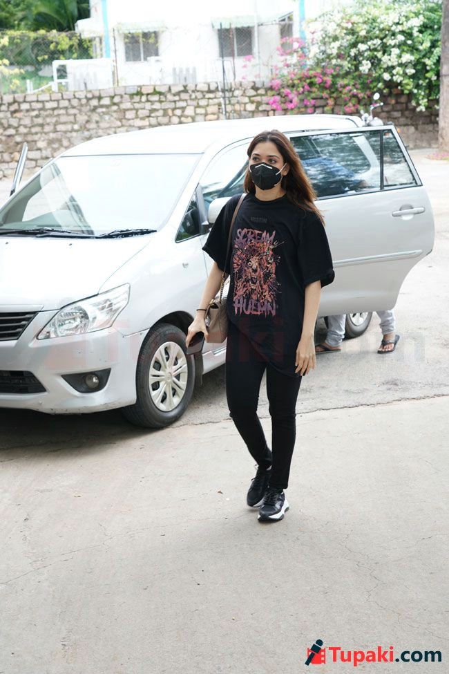 Tamannah And satya Dev At Dubbing Studio In Hyderabad