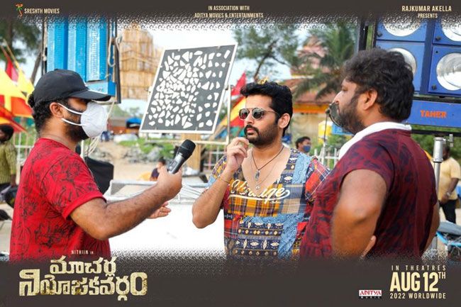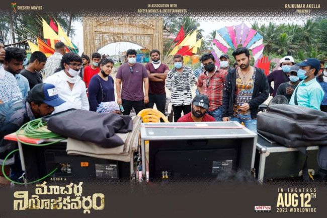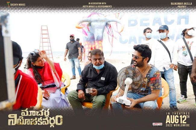 1 / 5Working Stills Of Macherla Niyojakavargam Movie