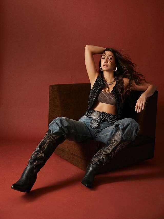 By: Tupaki Desk | 4 Jun 2025 4:31 PM ISTShreya Chaudhry just gave us a major western-inspired moment in her latest Instagram post. Sitting coolly against a deep rust backdrop, she rocked a look that feels straight out of a modern-day cowboy story. From the textured denim to the statement boots and chunky belt, every element had a free-spirited vibe. Her caption? “Horsing around 🌀” — short, cheeky, and totally on-brand for Shreya’s confident charm.