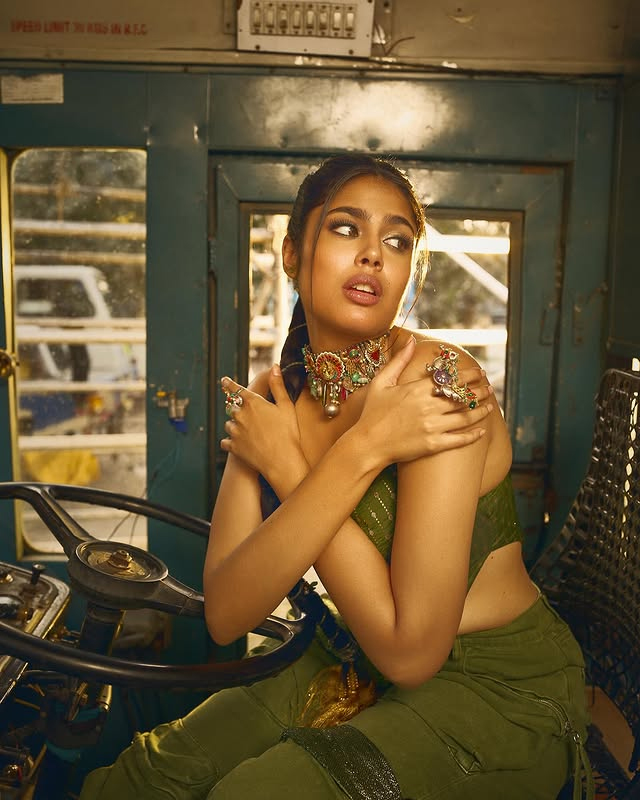 Besides her acting career, Faria is also admired for her fashion sense. Her recent Instagram photos showcase her in a striking green dress. She paired it with elegant statement jewelry including bold rings and a matching necklace.