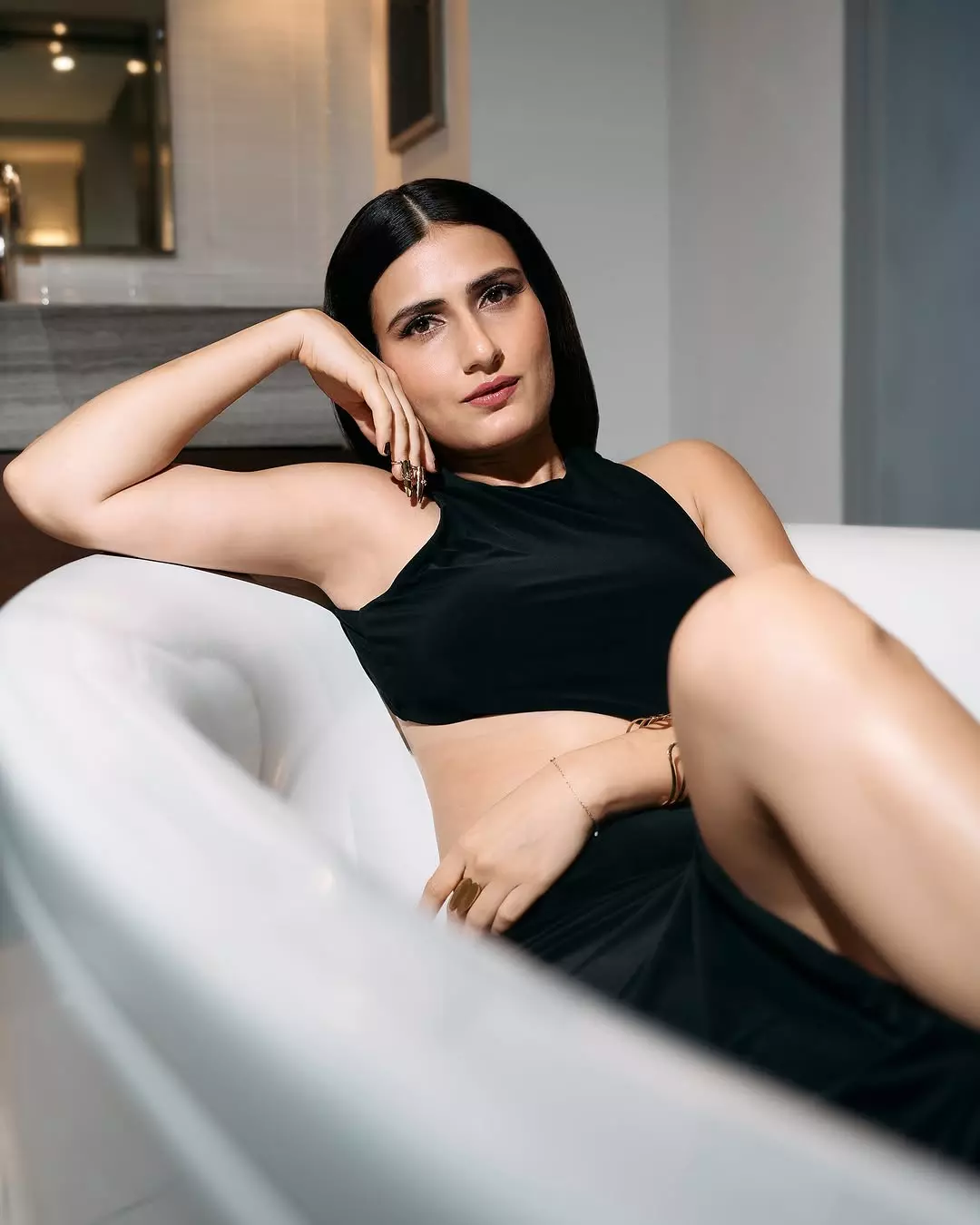 In one of the shots, Fatima poses with natural grace and her wavy hair flowing over her shoulders as she leans against a wall. Another striking image has her side profile as she arches slightly. The minimalist backdrop amplifies the raw energy of the shoot by making Fatima the focal point of the frames. This shoot shows her off-screen personality.
