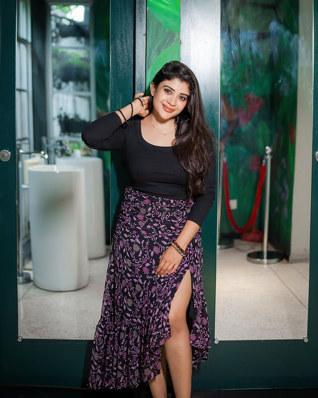 Her most recent work was in the film Fire. Fire is a Tamil romantic crime thriller. It was released in 2025. JSK Sathish Kumar directed and produced the film. It was his first film as director. The movie was made under the JSK Film Corporation banner. Balaji Murugadoss played the lead role.