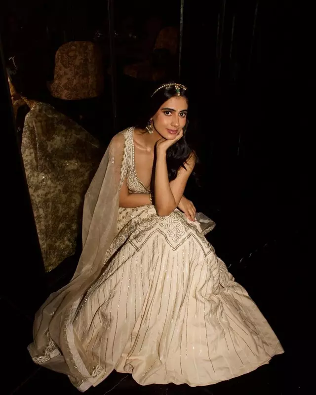 Gehna kept her look effortlessly chic with subtle makeup and sleek hair, letting the outfit speak volumes. Her choice of delicate accessories added just the right amount of sparkle, balancing tradition with a modern twist.
