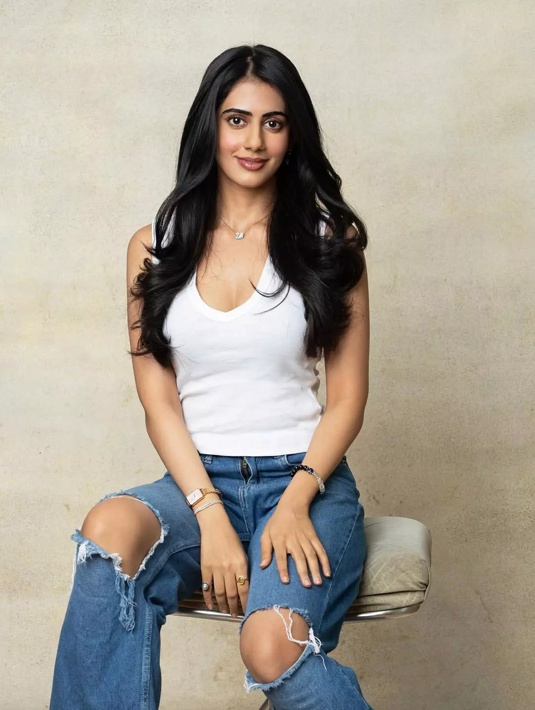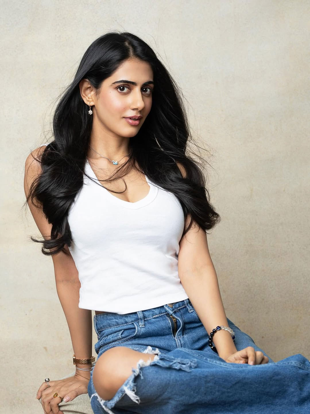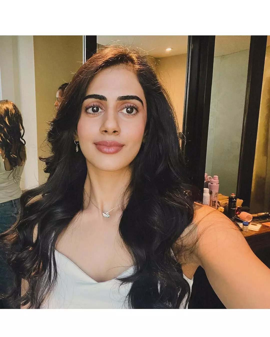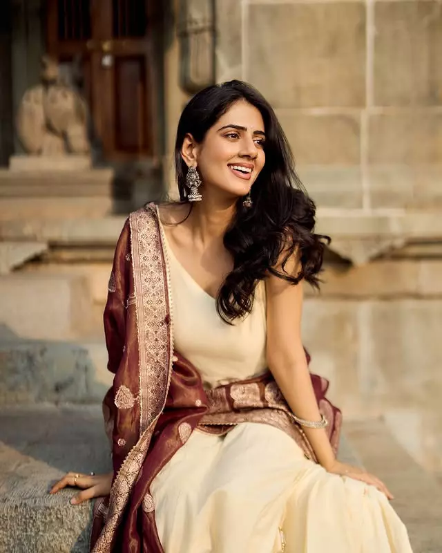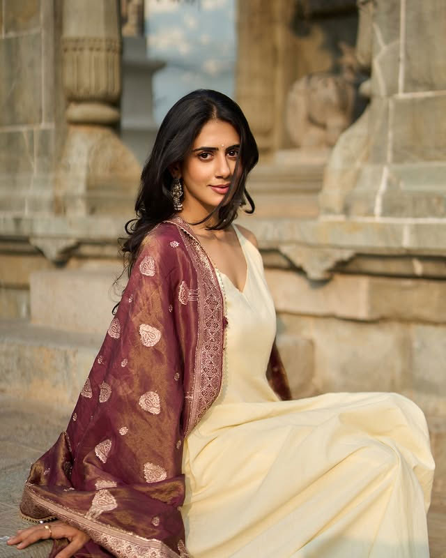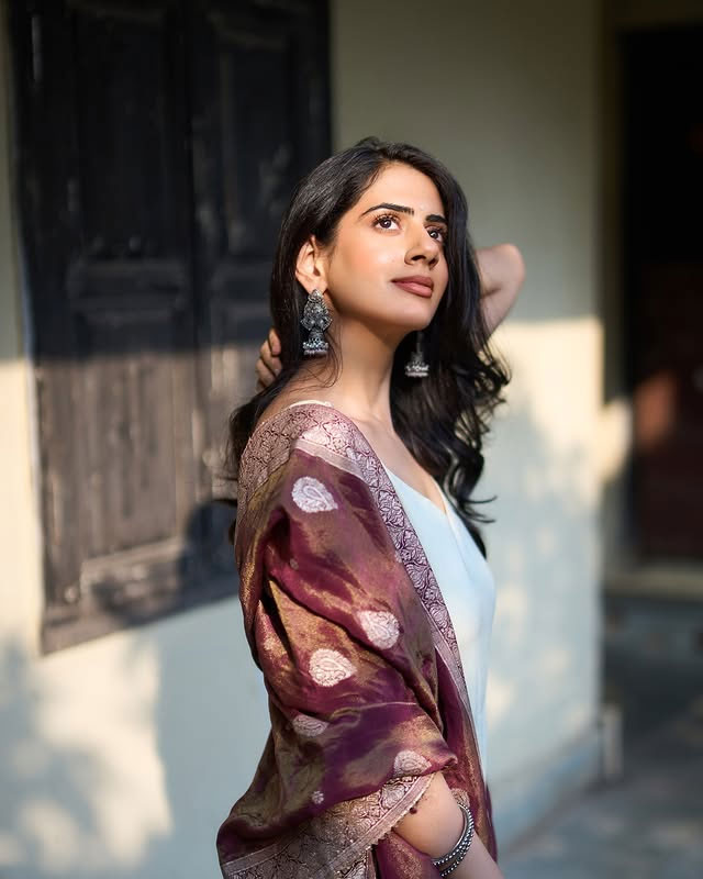 With minimal makeup and soft waves cascading down her shoulders, she lets her elegance speak for itself. Whether it’s for a casual day out or a subtle statement at an event, this look proves that white is always in style—especially when worn with Gehna’s poise.
